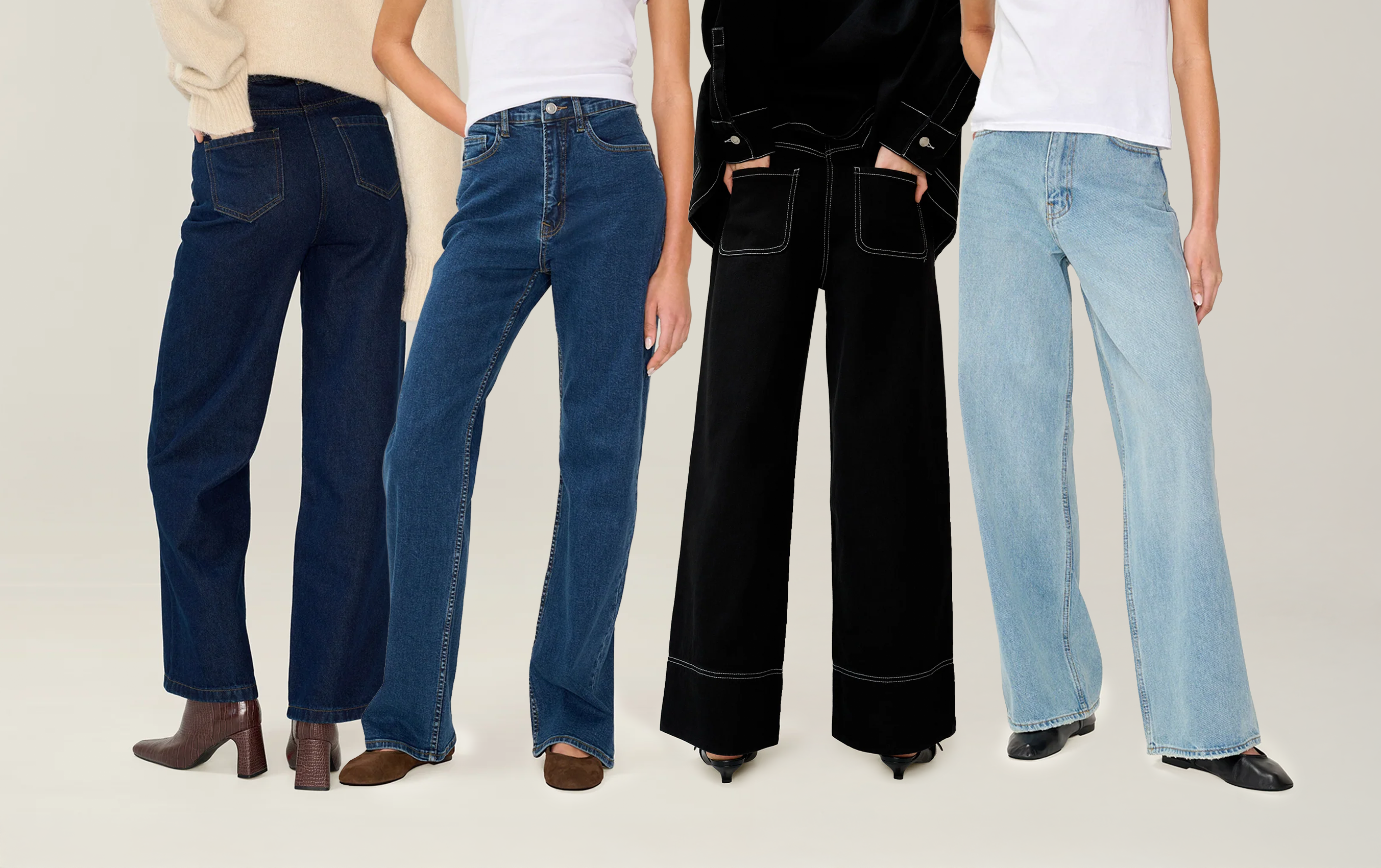 Wide-leg jeans are defined by a silhouette that stays loose from him to hem. Our Connie jeans are the quintessential wide-leg, balancing structure with slouch. Offered in a light wash and classic black. THE GOOD STUFF High Rise 13oz denim Available in 2 washes Branded jacron