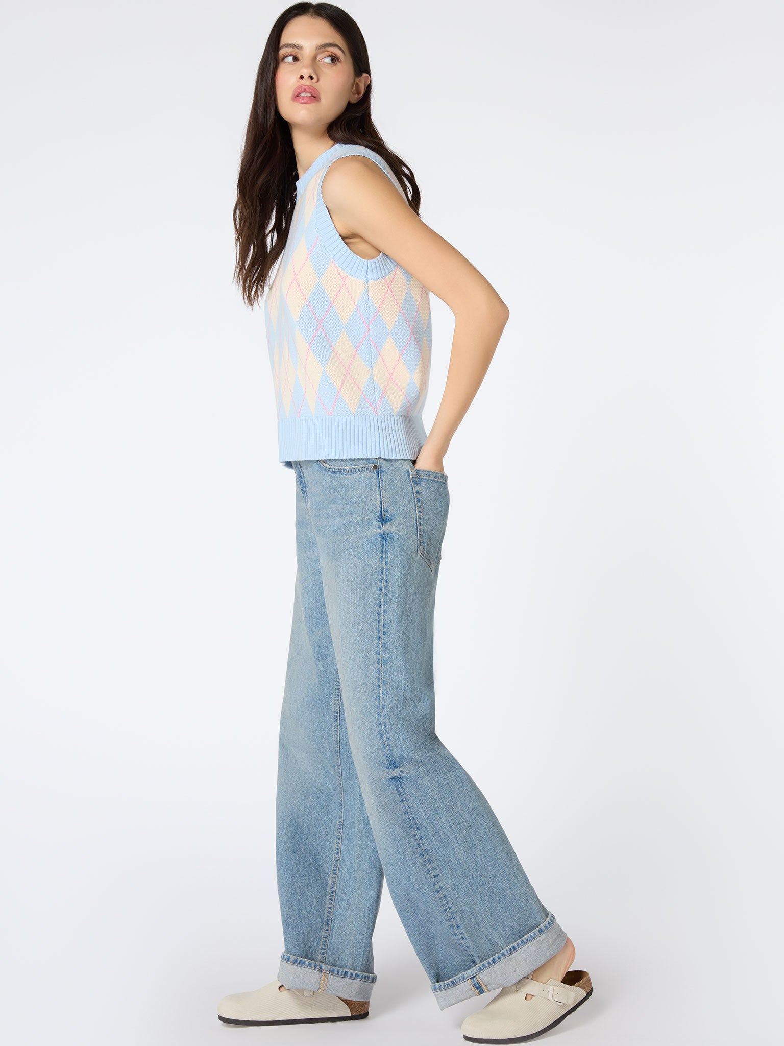 No longer the go-to of the grandpa, the sweater vest is the new wear-every-way wardrobe staple. Our Bobbi sweater vest is designed with a timeless argyle print. Wear alone or layer-up to your hearts desire.