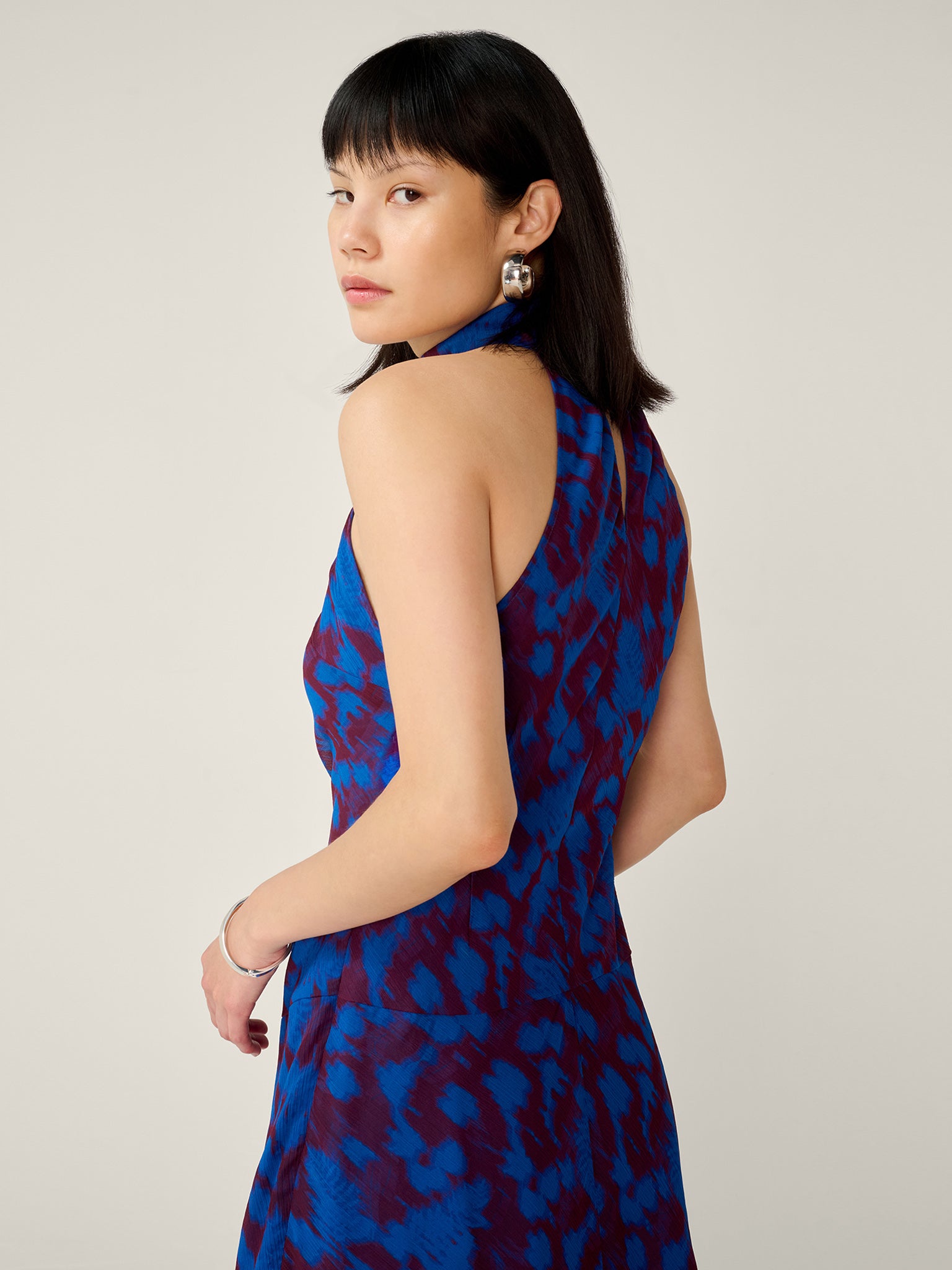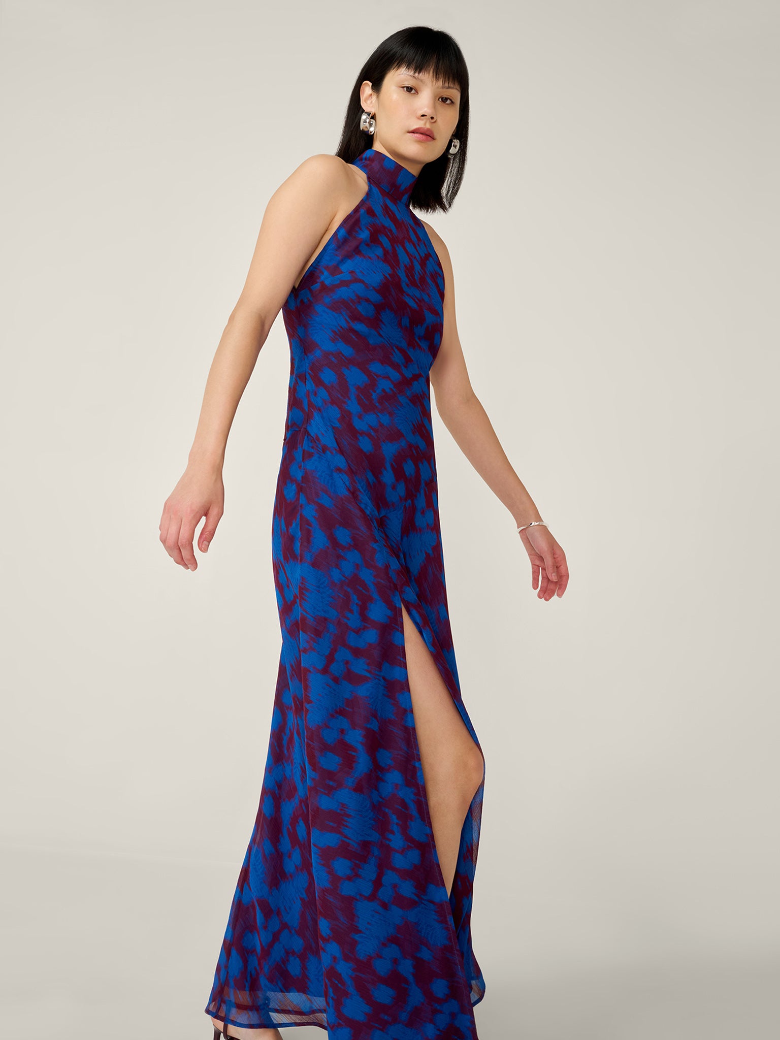 Featuring a halter neckline with button collar, Elsie is a fun and flirty chiffon maxi dress. Designed in a romantic wild fern print, the full skirt creates a playful sense of movement with a leg split adding an element of cheekiness.