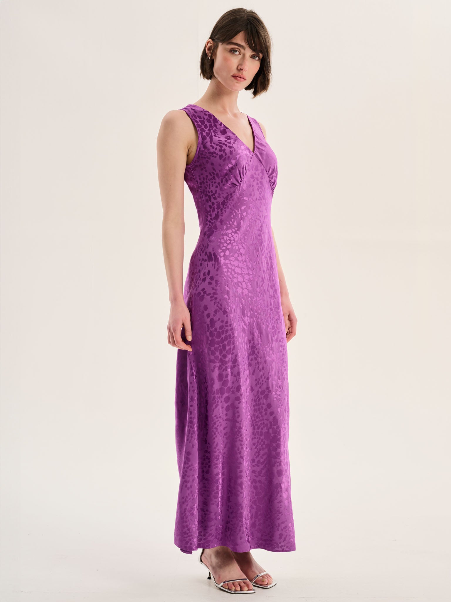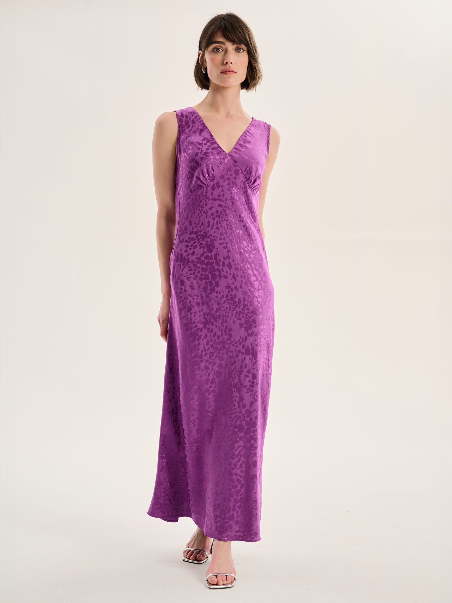 Sleeveless V neck midi dress that hugs at the waist Maxi dress that skims the hips floating out at the hem Fit: Regular Dress Length: Maxi
