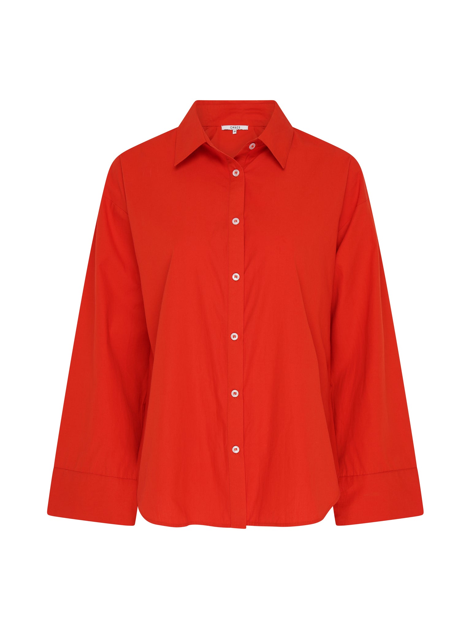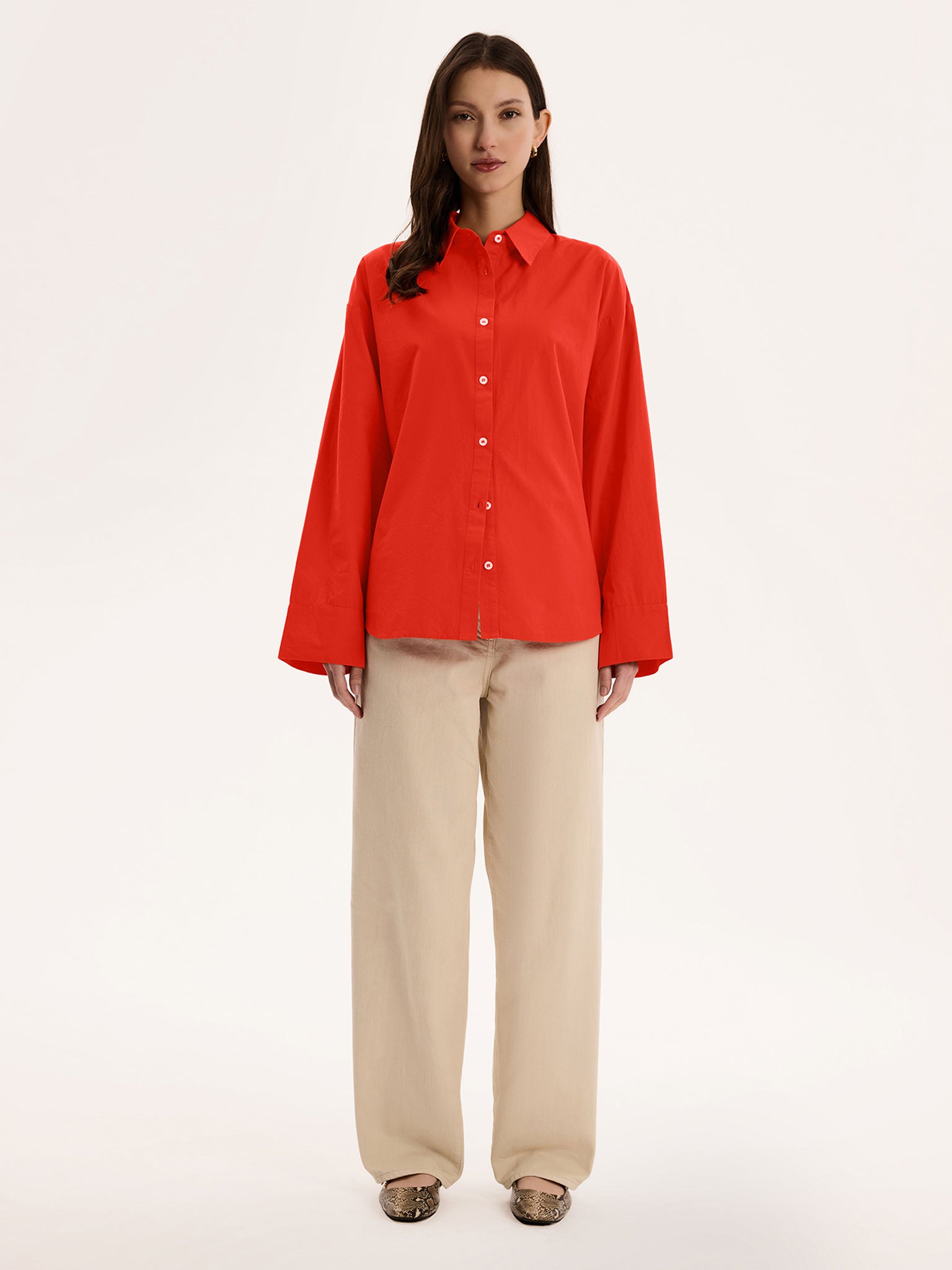 Taking a relaxed approach to the tailored shirt, Kendall has an oversized fit with a wide sleeve. She’s designed for easy layering in tomato red cotton sourced from BCI member farms.