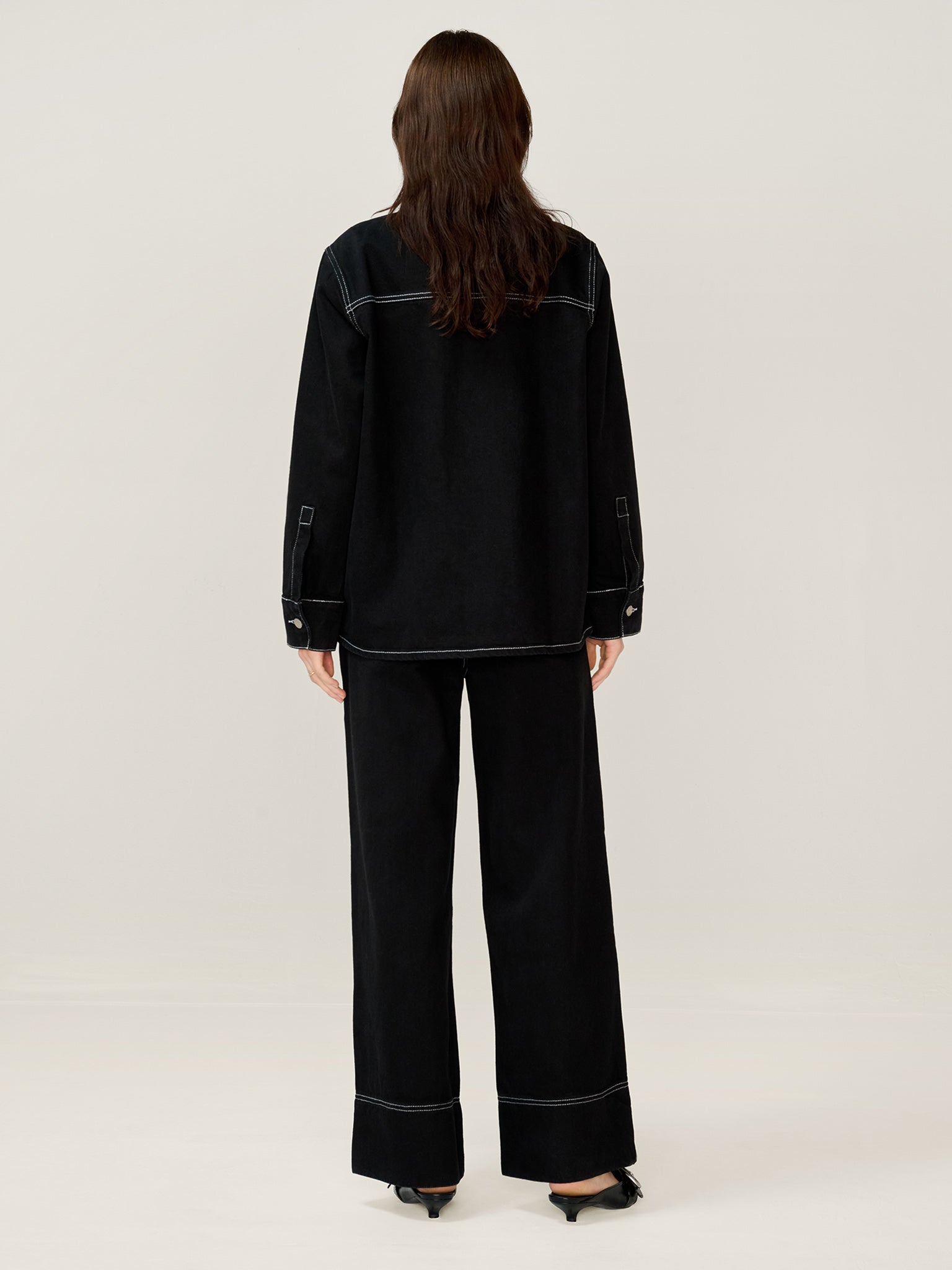 Magnus is cut for an oversized fit in rich black denim with bold contrast stitching for a fresh take on the shirt jacket. Finished with patch pockets, it’s the perfect throw-on piece; whether worn solo or layered up. For a double denim dream, pair with the matching jeans.