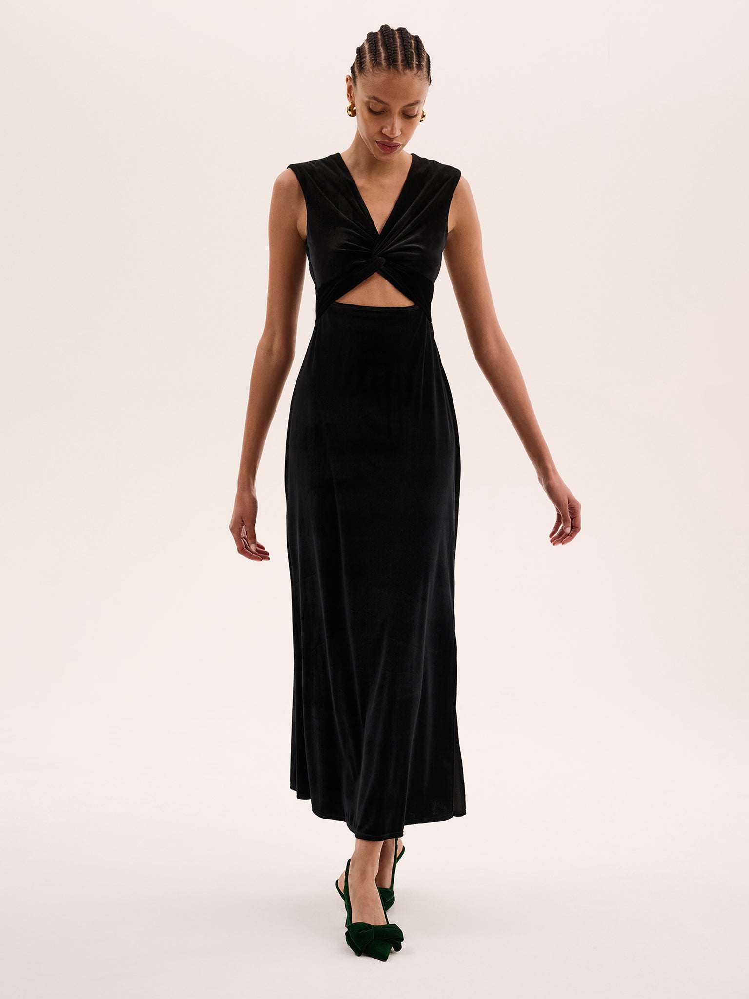 Everyone’s favourite Marin has been redesigned in plush recycled velvet. The perfect occasion dress, she features a twist front, v-neck and cutout under the bust. In timeless black with a peek-a-boo cut-out detail at the back, Marin combines a classic silhouette with the luxurious feel of velvet.