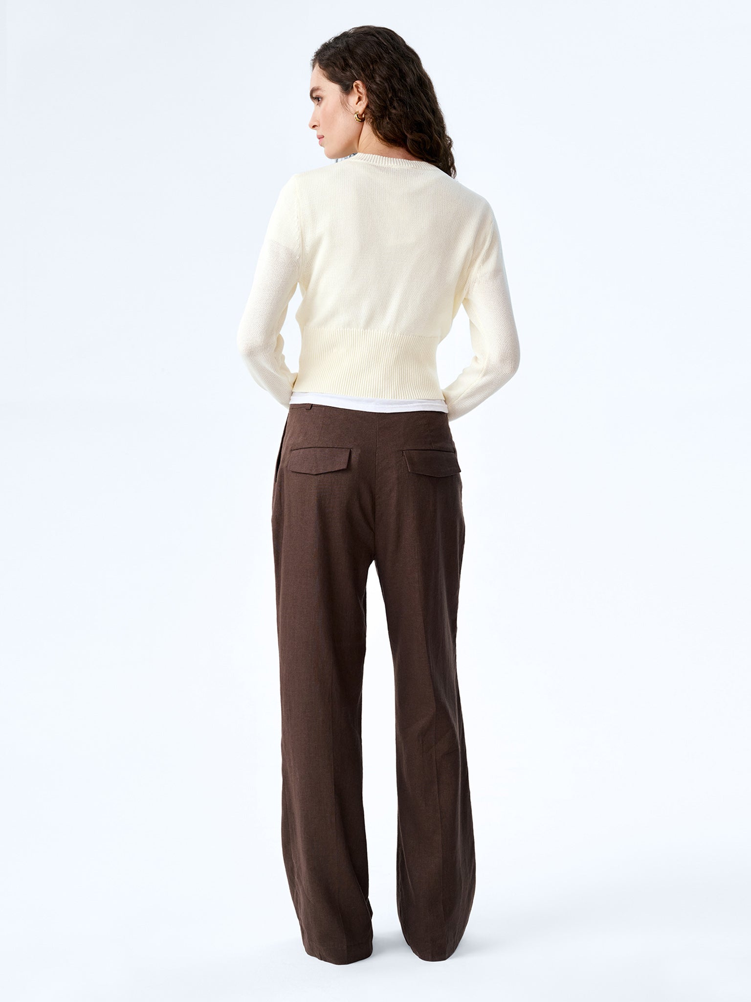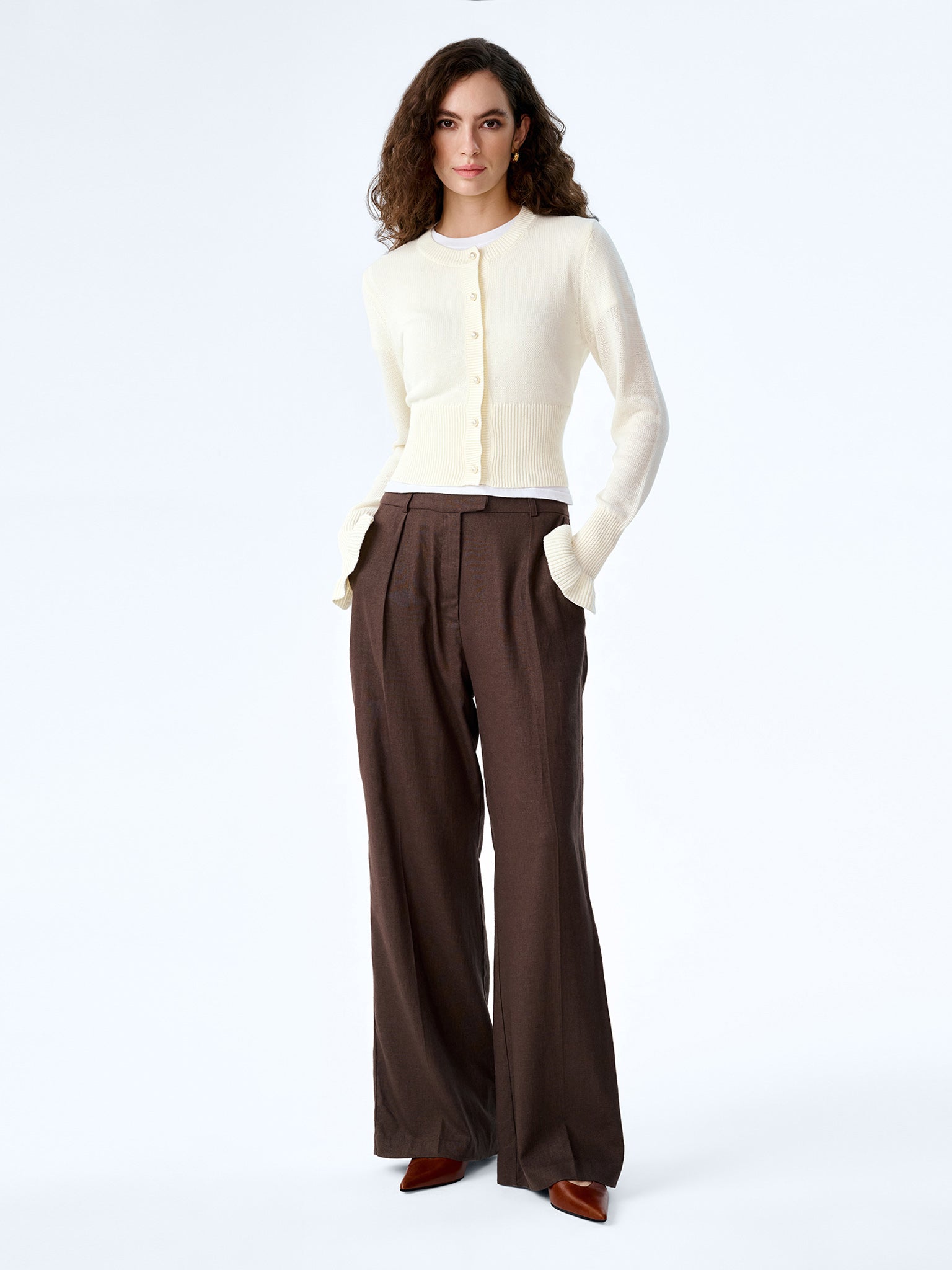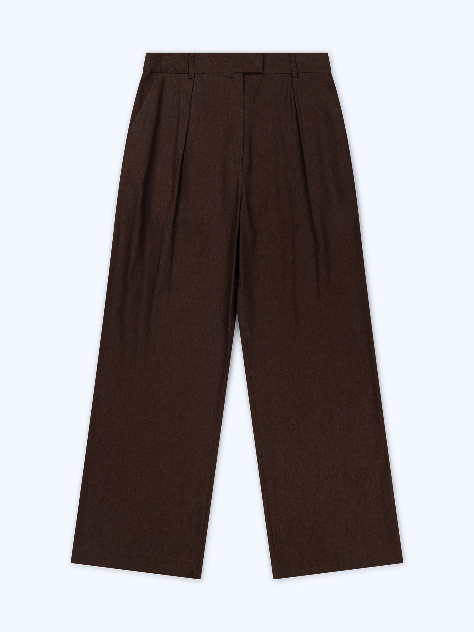 The Pearl trousers are the perfect balance of tailored polish and effortless ease. Crafted from breathable linen in a rich chocolate hue, they feature a high-rise waist and front pleat to add just a hint of structure. The wide-leg silhouette is endlessly flattering, perfect for pairing with everything from a casual tee to a fitted waistcoat or romantic cami.