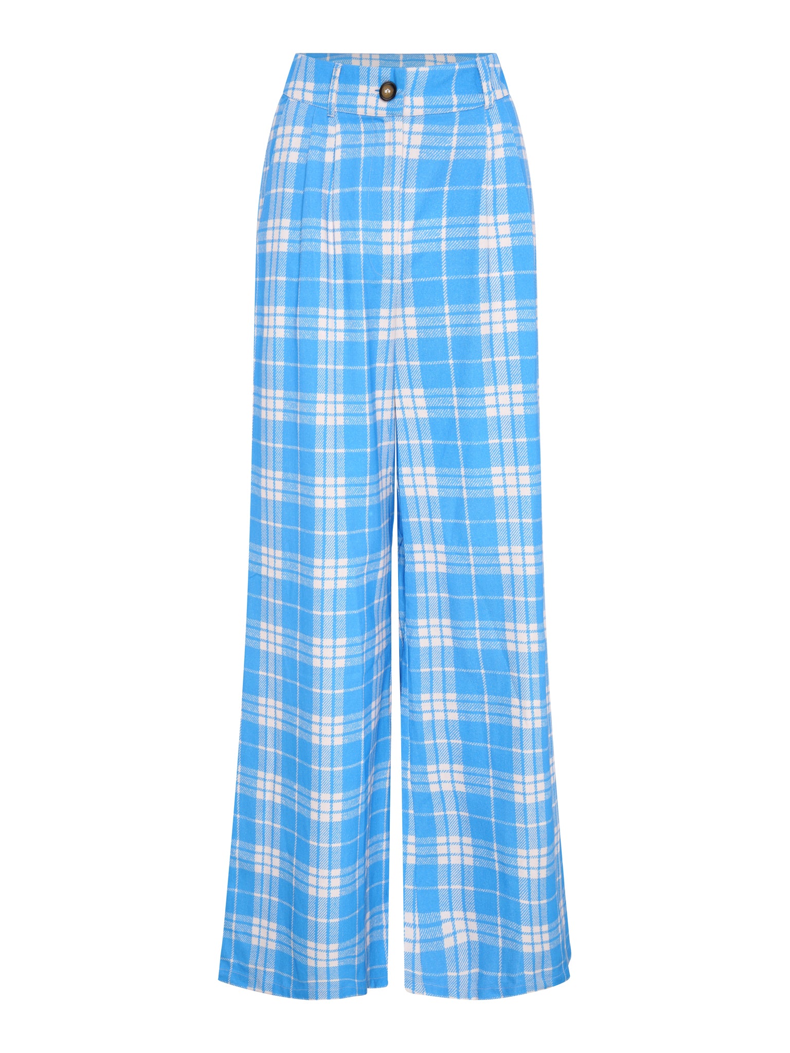 Crafted from 100% cotton, Samara is an easy wide-leg trouser with a high-waisted fit. Designed in a blue check, she's got a timeless silhouette with a little something extra.