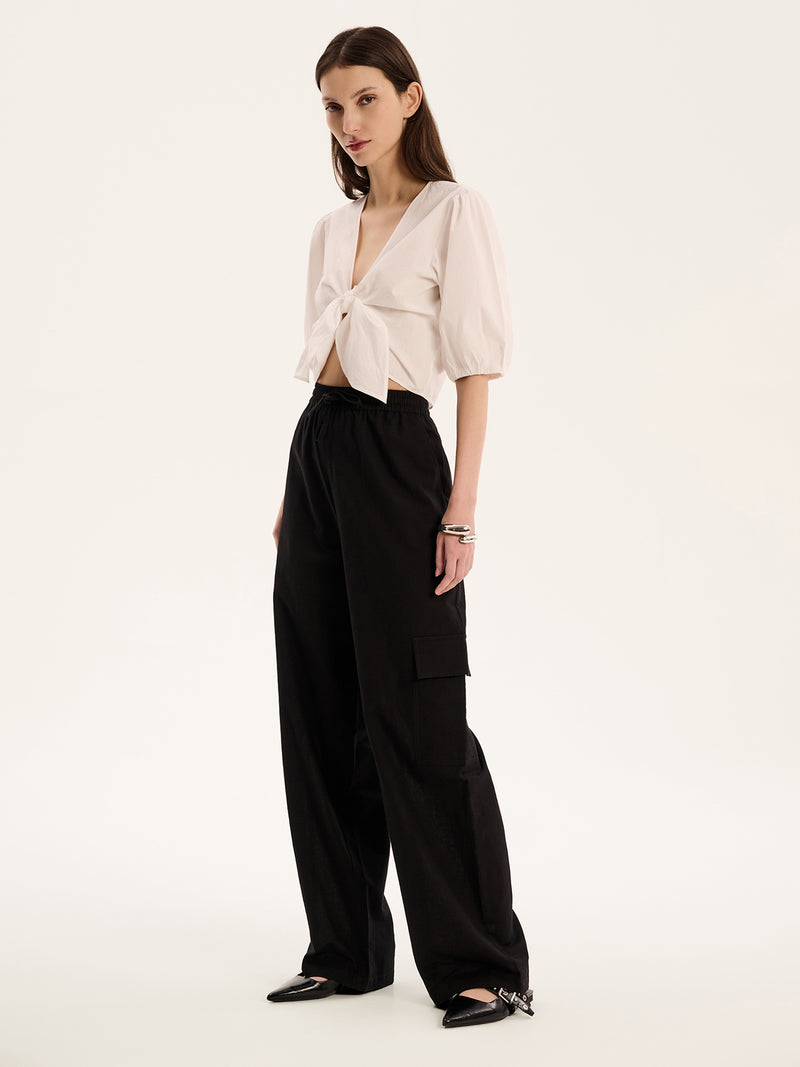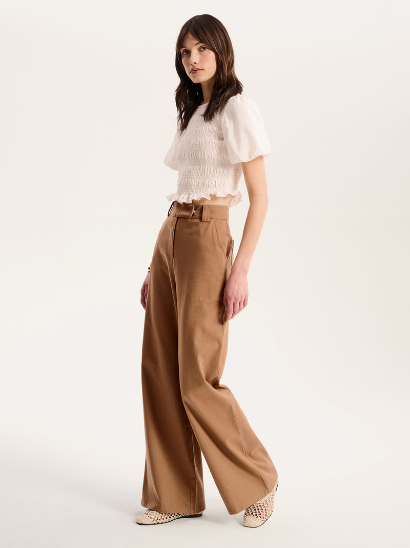 From high-waisted, straight leg styles, to wide leg culottes and statement printed trousers, all designed with the planet in mind using responsibly sourced fabrics including recycled polyester, organic cotton, LENZING™ ECOVERO™ Viscose and deadstock materials. Perfect paired with our tops and knitwear.