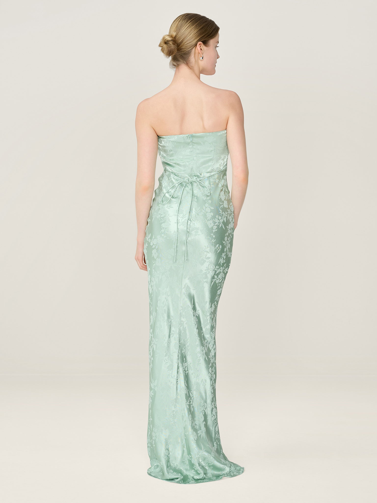 Simple, strapless, stunning; the Amdra is all that and more. Crafted from a slinky LENZINGª ECOVEROª Viscose blend in a gorgeous sage green floral jacquard, she's fitted throughout to enhance the elegance of your figure. Designed to sit within our wedding edit, she would make a great bridesmaid dress whether you're sticking to a theme or mixing and matching across colours and silhouettes.