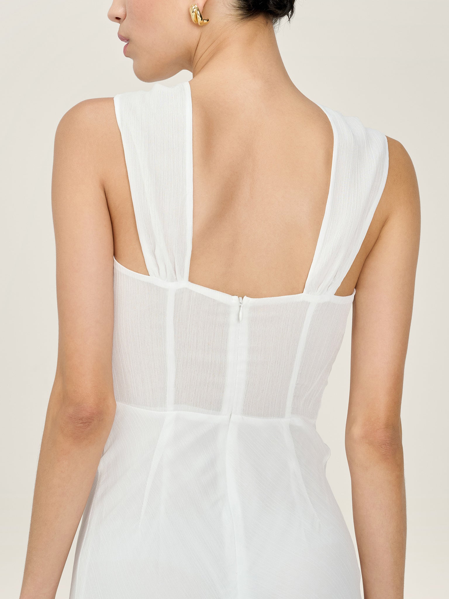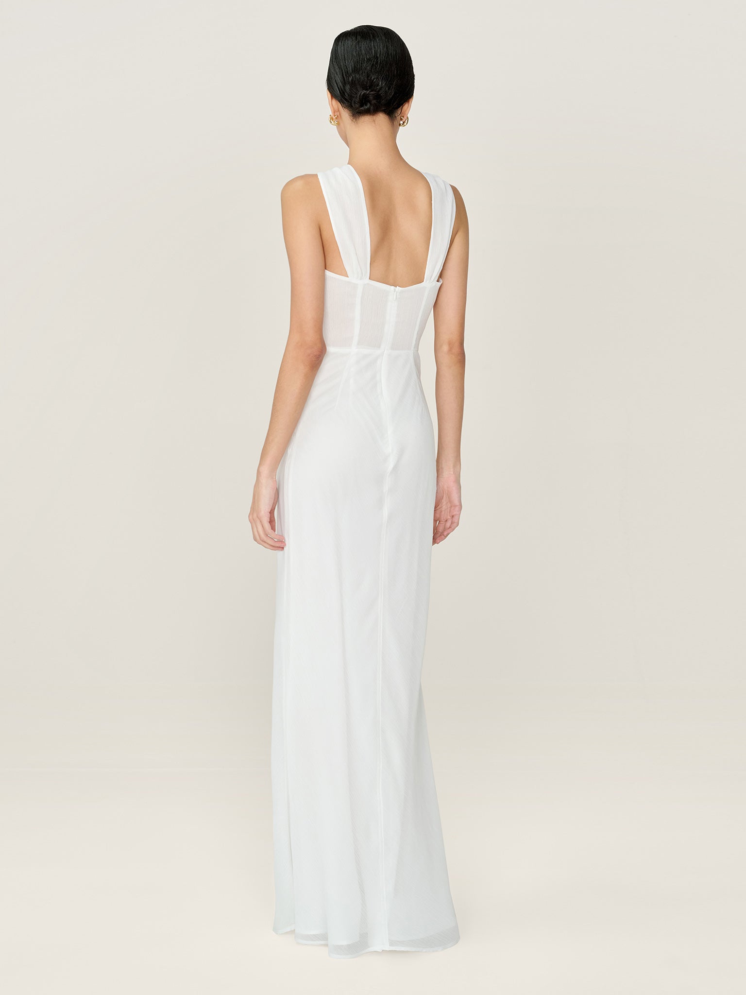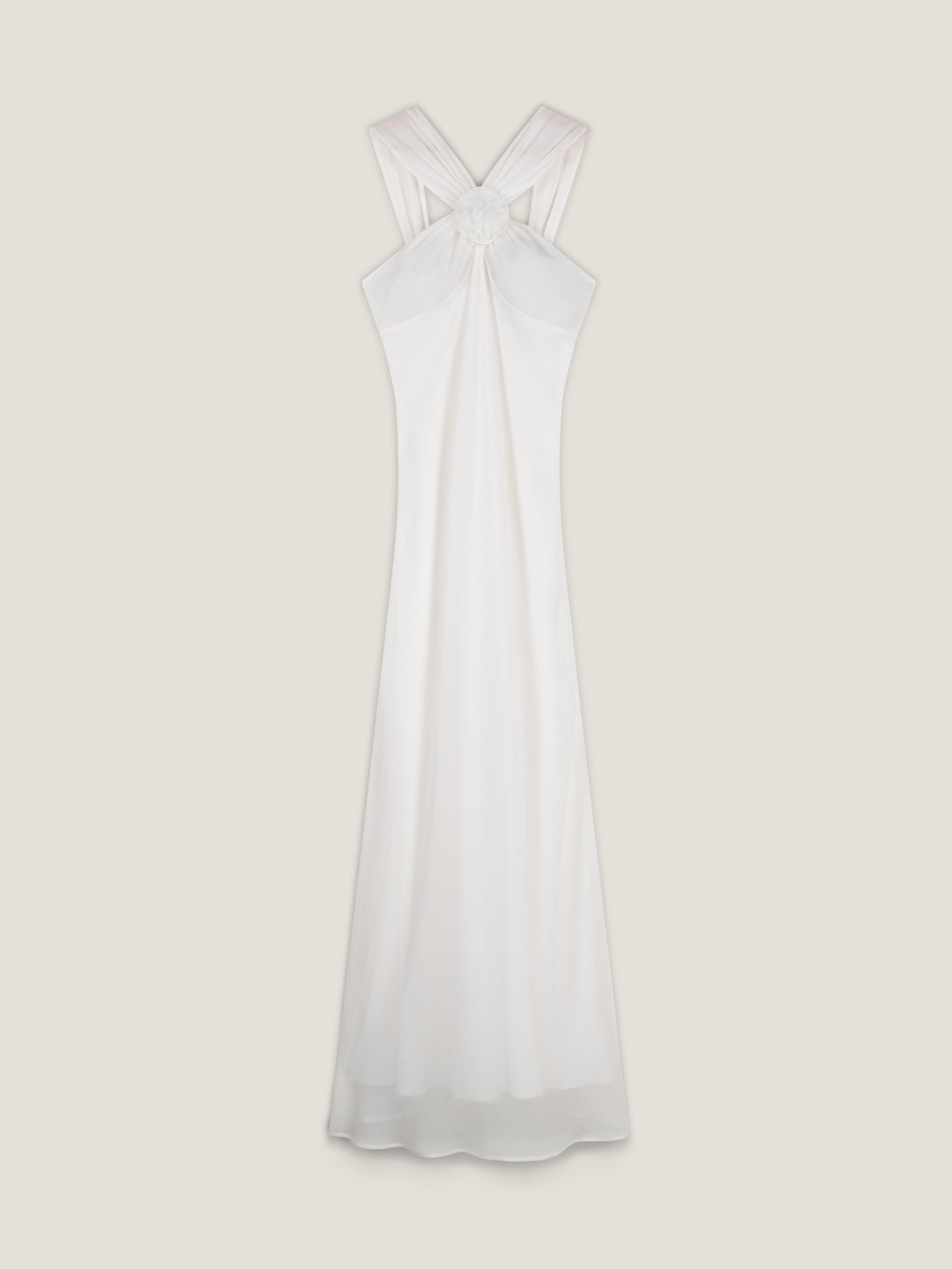 Amelie is a romantic, floor-skimming chiffon maxi dress designed to make an entrance. Featuring an elegant high neckline and sculptural rosette detail, Amlie balances softness with statement. The wide straps celebrate the simplicity of the silhouette, whilst the fluid skirt drapes dramatically to the floor. Part of our Bridal collection, Amelie is a timeless choice for weddings, engagement parties and even simply evenings that call for something special. This dress is designed to be slightly sheer.