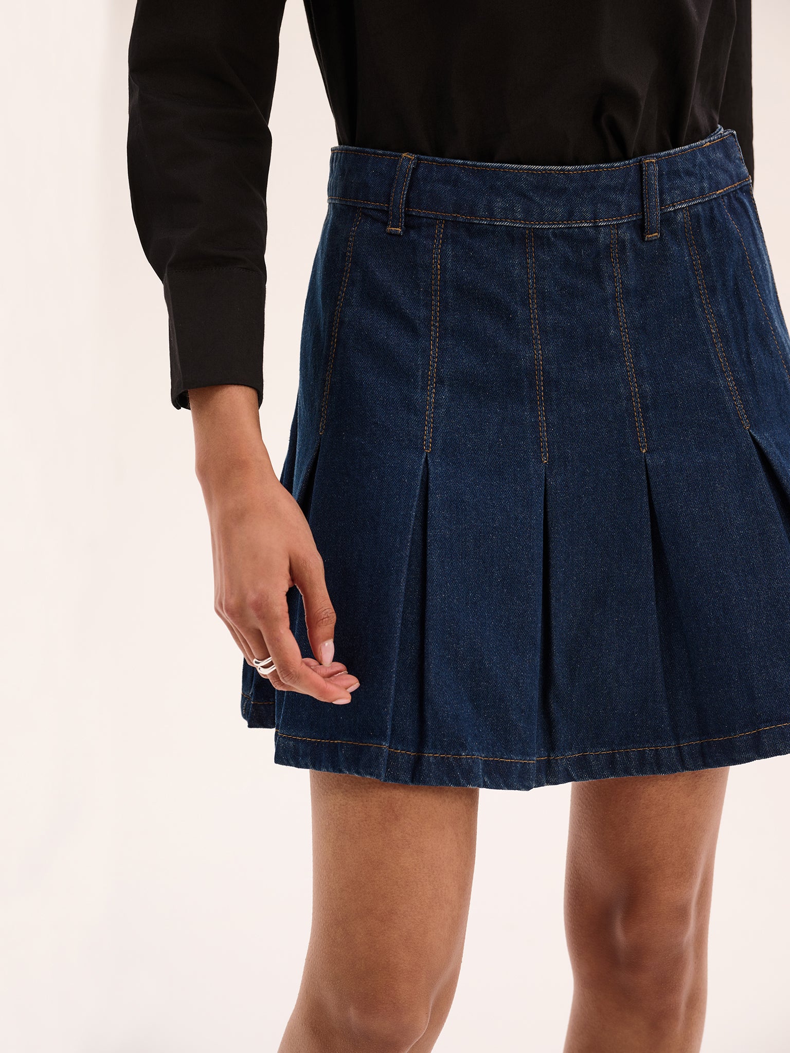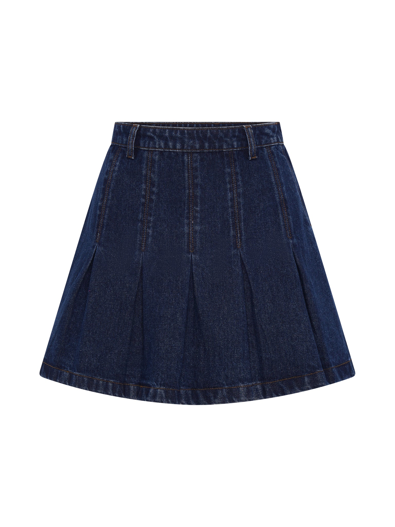 A fun and feminine take on the denim mini skirt, Echo is designed with structured pleats to give a little bit of extra shape. Designed in a mid-wash from BCI member sourced cotton, Echo is perfect for dressing up or down.