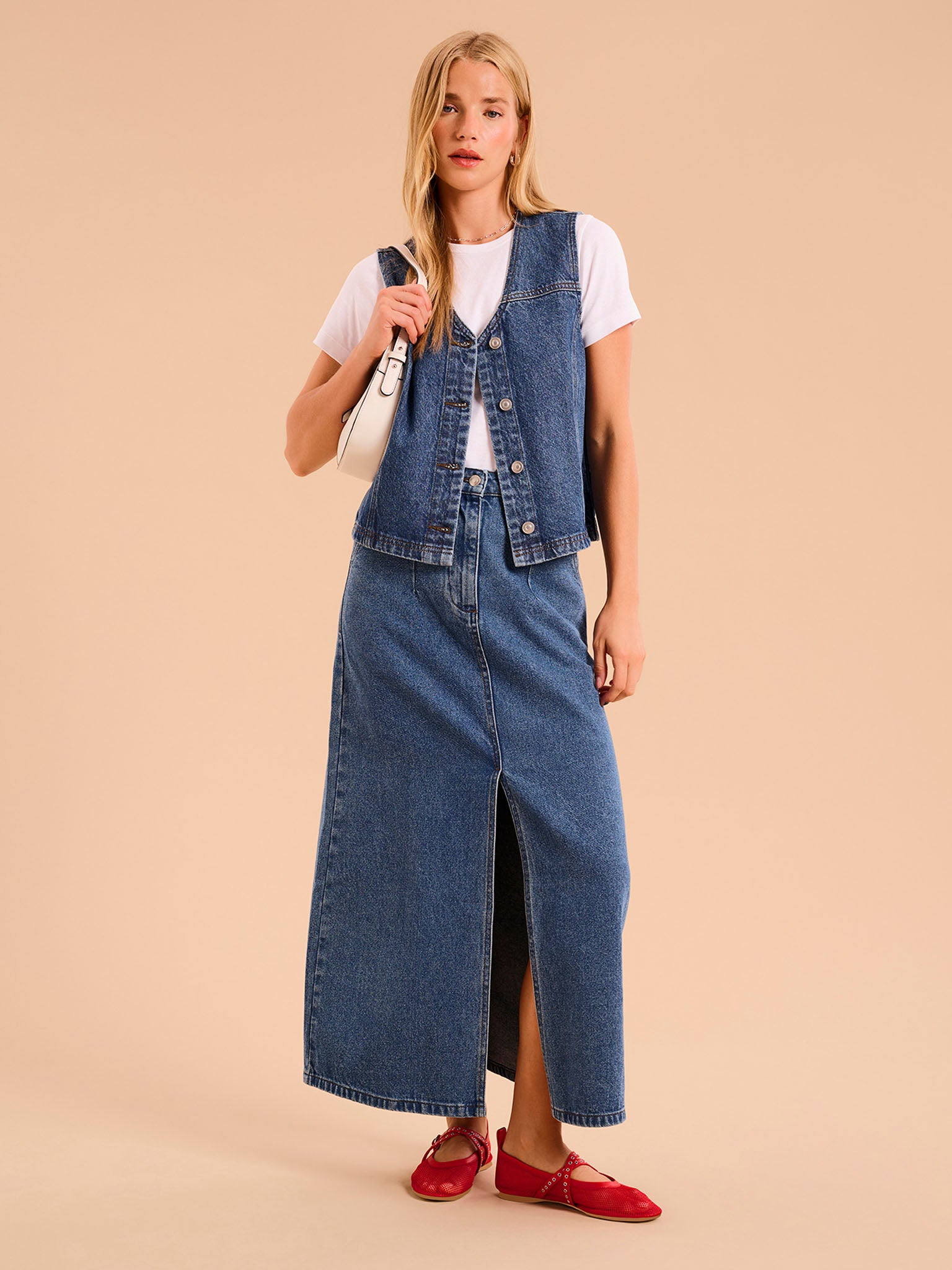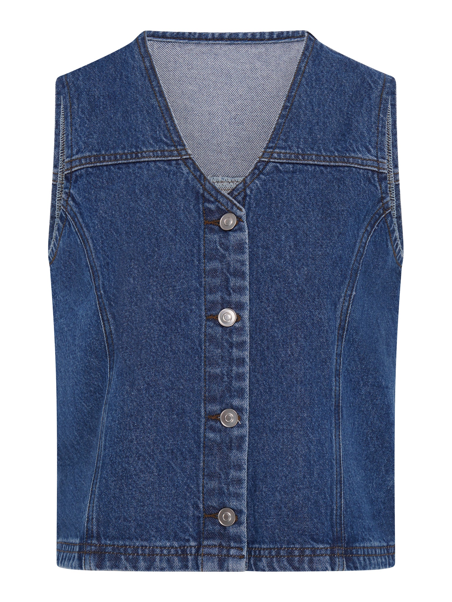 With a relaxed, boxy fit, Talena is your everyday denim waistcoat. In a classic mid-wash, she's crafted from cotton with a button-down front. Wear as is or layer to your heart's content.