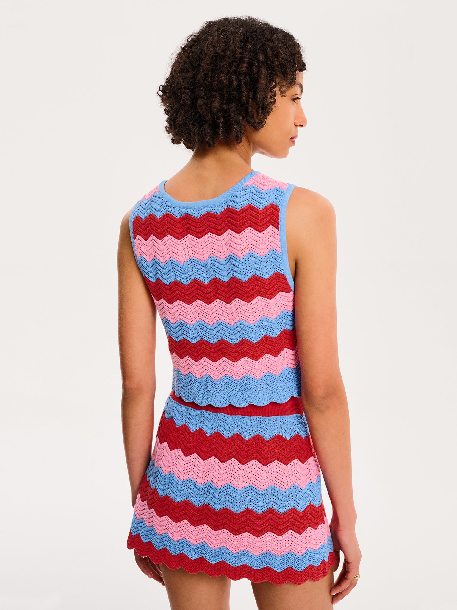 Add a touch of crochet to your wardrobe with Wilma. Crafted soft cotton with an open-weave, this everyday vest is designed with wavy stripes and a scalloped hem. Pair with the matching Ivory skirt for a full crochet co-ord moment.