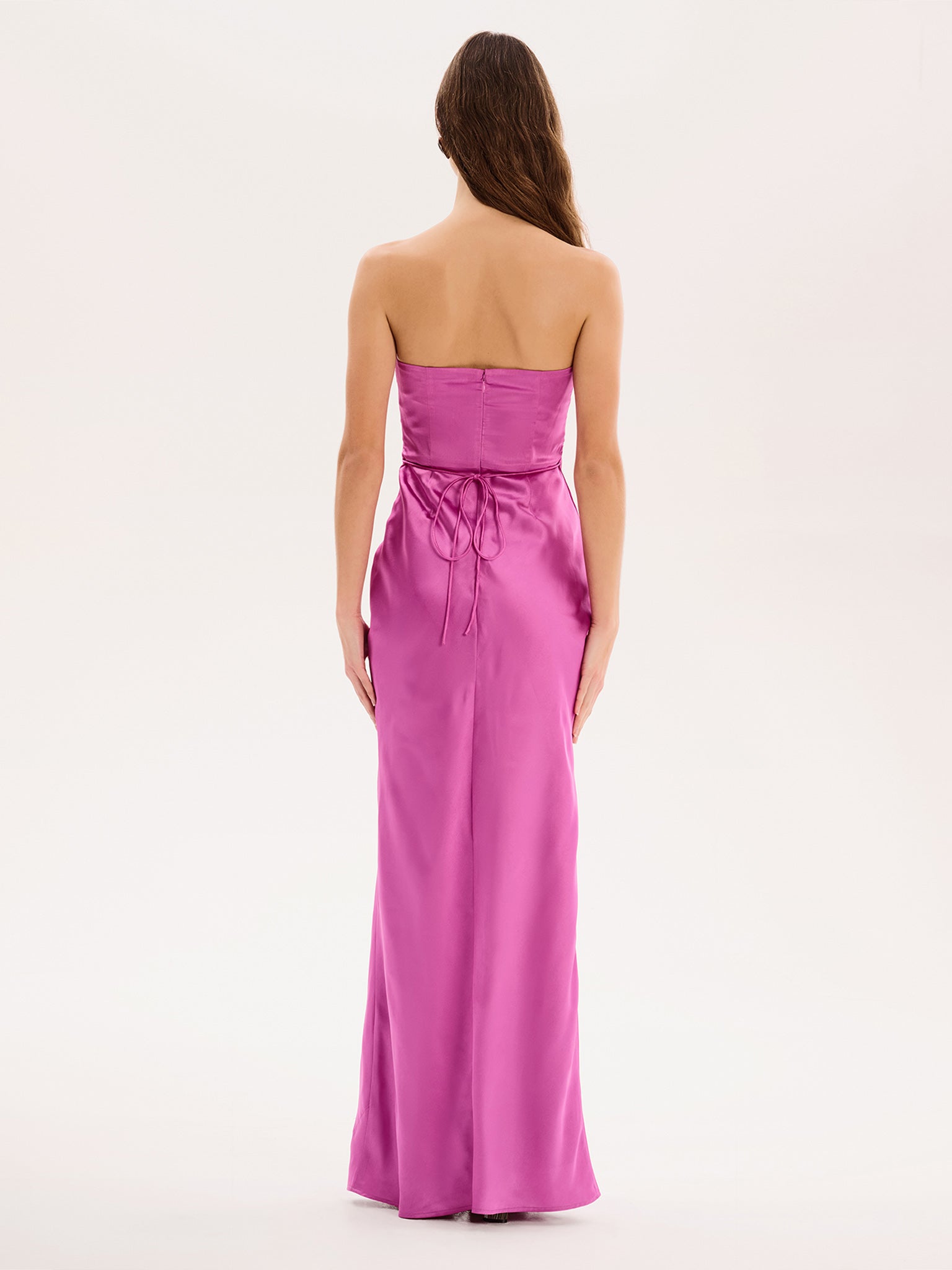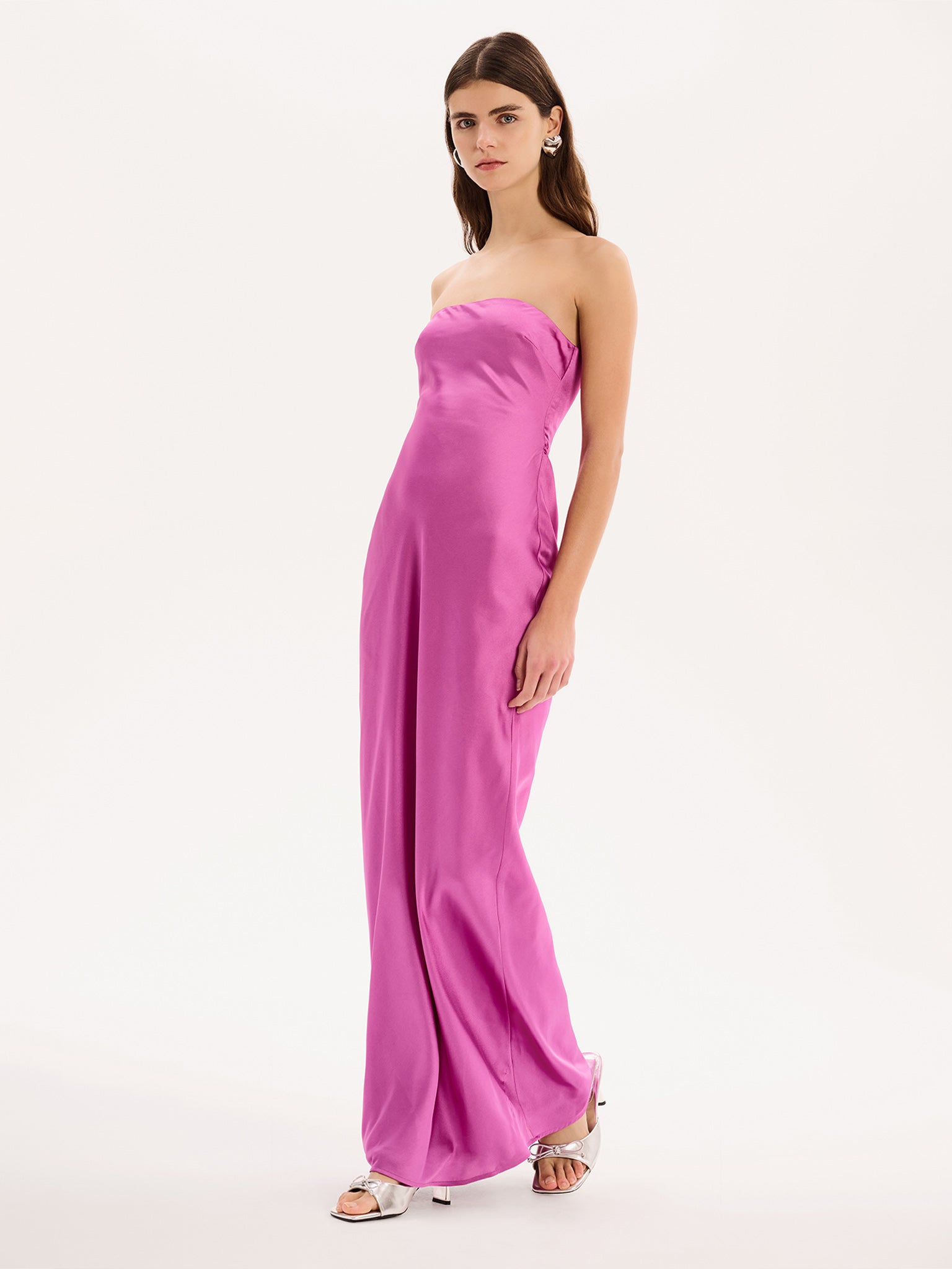 Simple, strapless, stunning; the Amdra is all that and more. Crafted from slinky 100% recycled polyester in a vibrant purple, she’s fitted throughout to enhance the elegance of the silhouette.