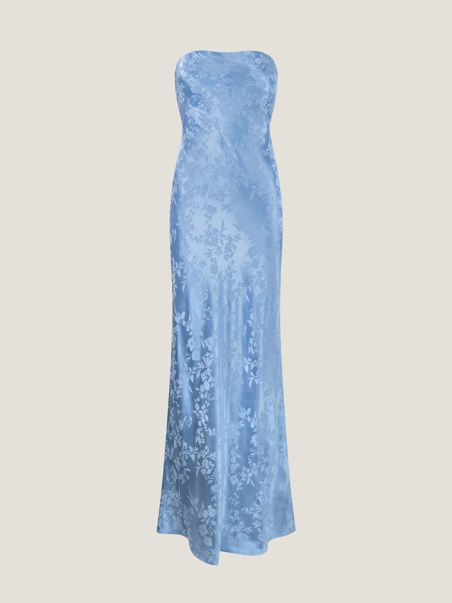Simple, strapless, stunning; the Amdra is all that and more. Crafted from a slinky LENZINGª ECOVEROª Viscose blend in a gorgeous powder blue jacquard, she's fitted throughout to enhance the elegance of your figure. Designed to sit within our wedding edit, she would make a great bridesmaid dress whether you're sticking to a theme or mixing and matching across colours and silhouettes.