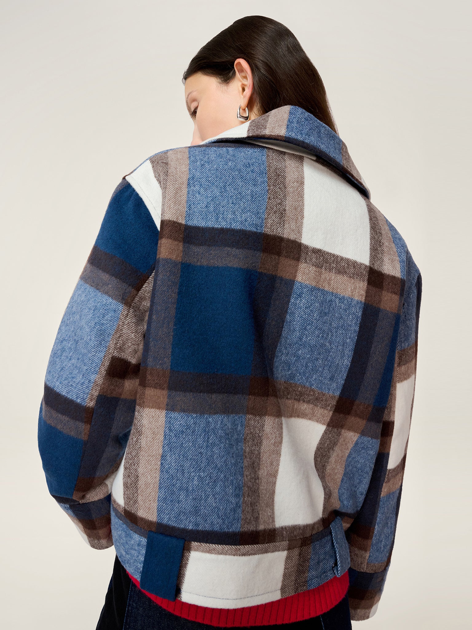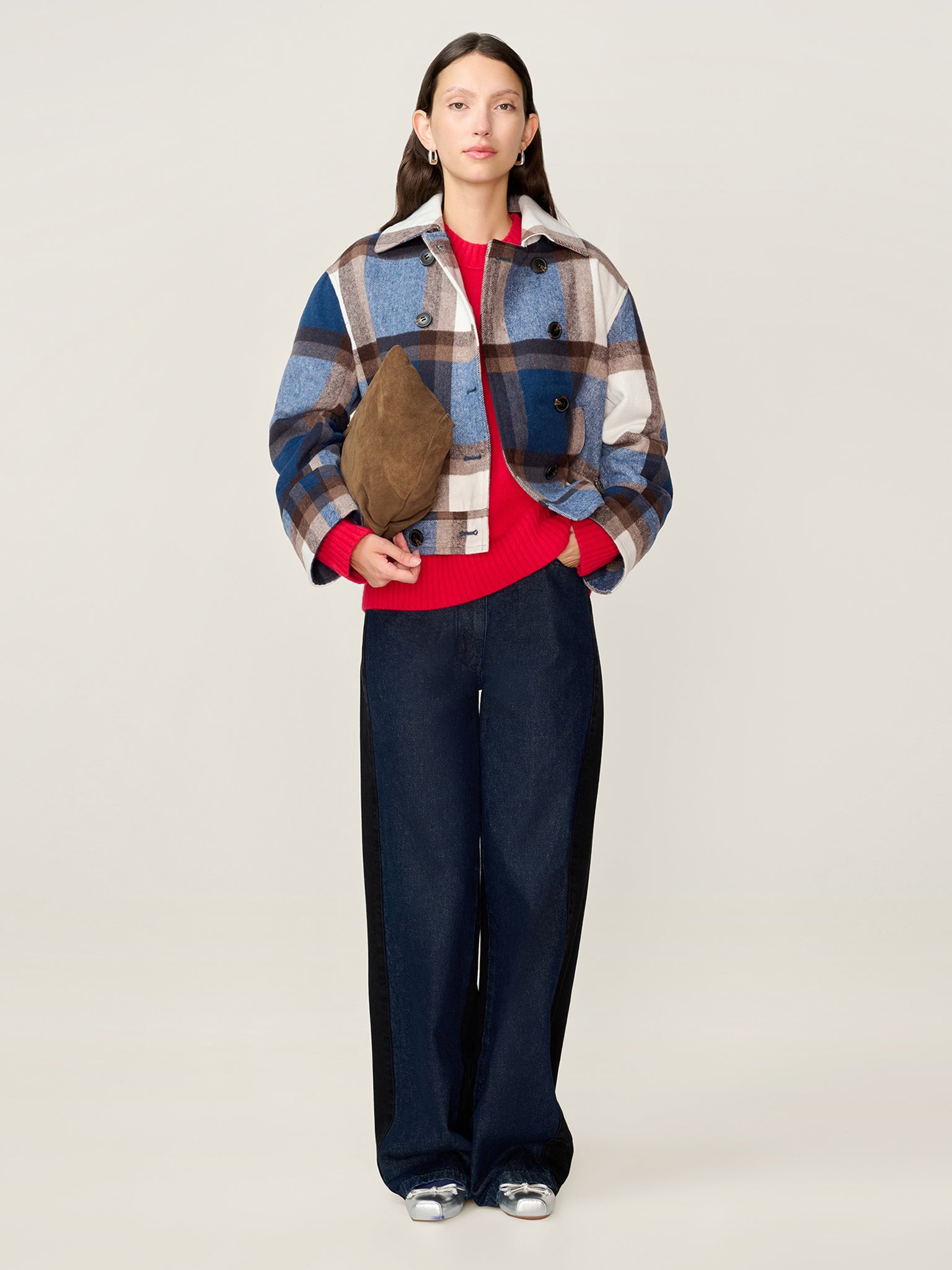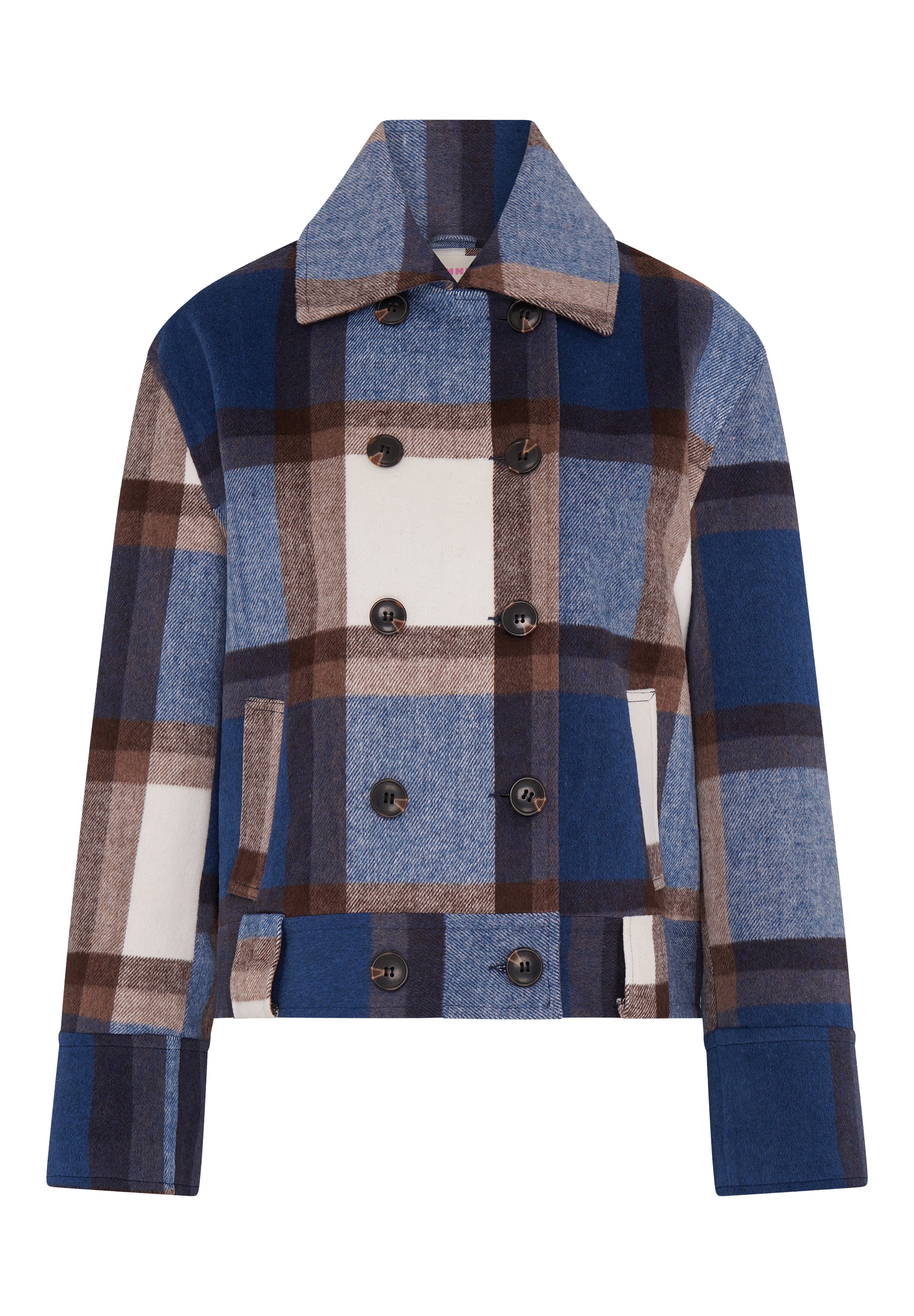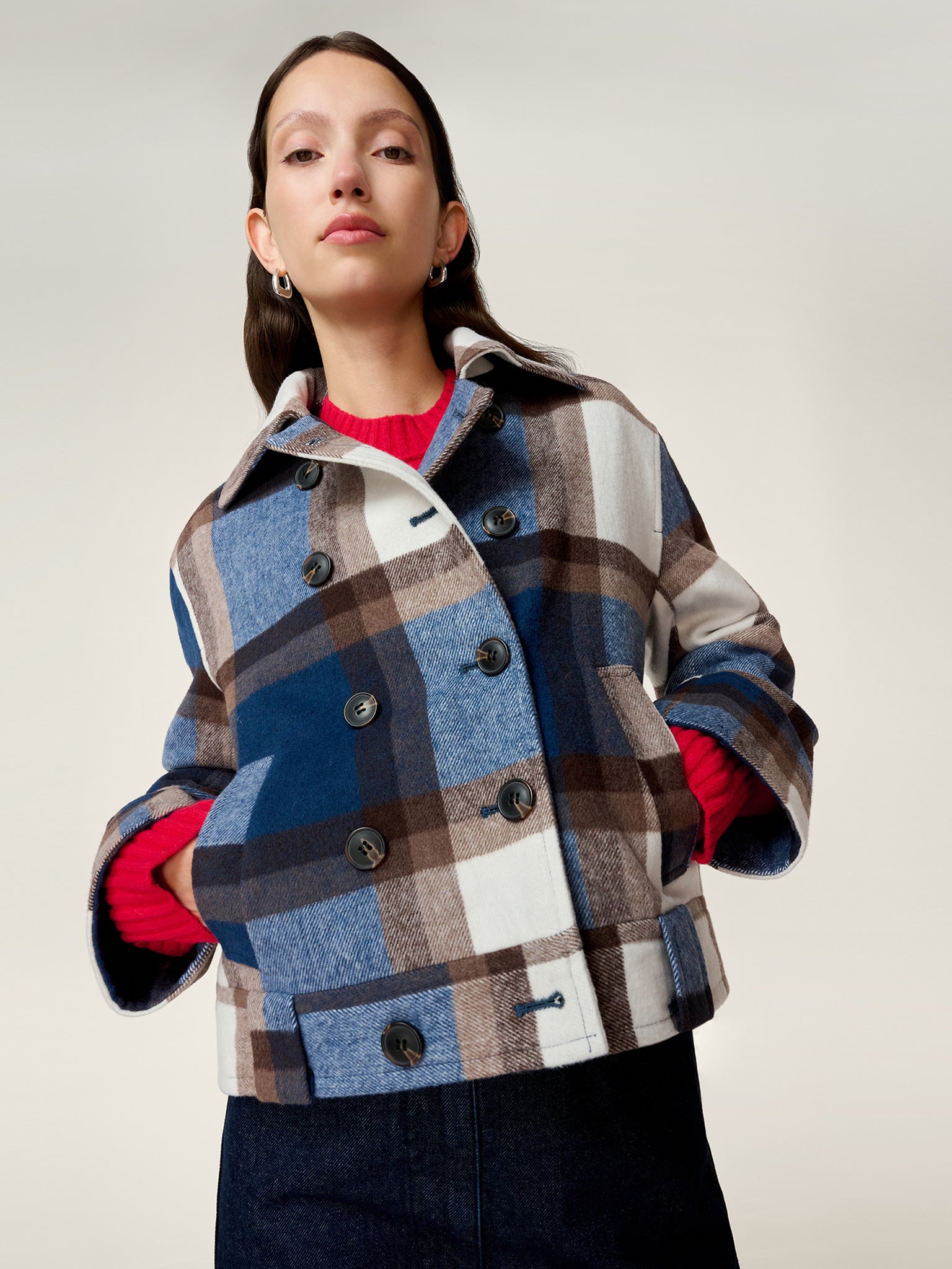 Tailored in a soft wool blend, this cropped coat features a timeless check print that brings subtle texture and depth. Designed with a structured collar and double row of buttons, its boxy silhouette keeps things modern while still feeling polished. Whether layered over denim or styled with tailoring, Clyde is your answer to effortless outerwear with character.