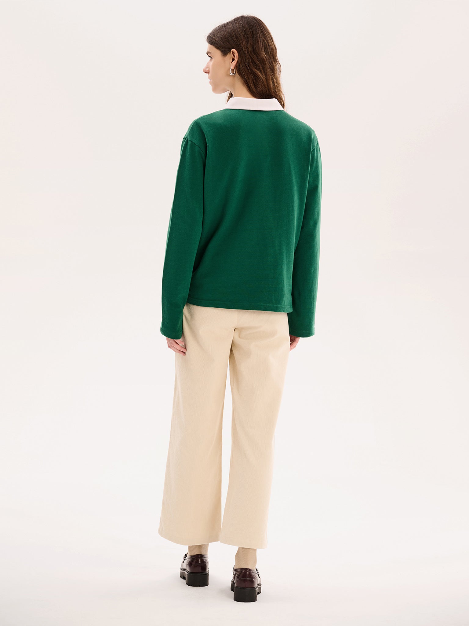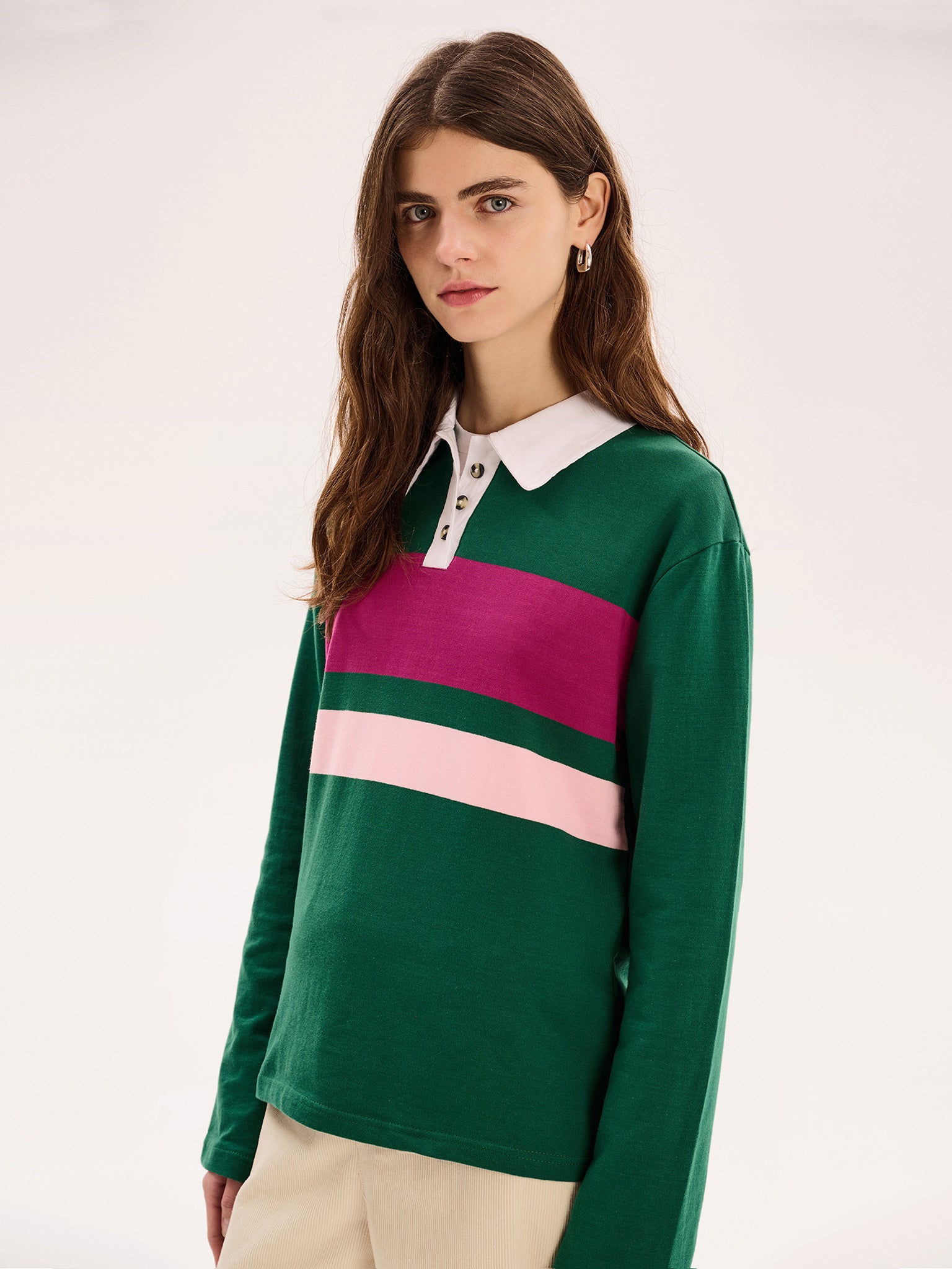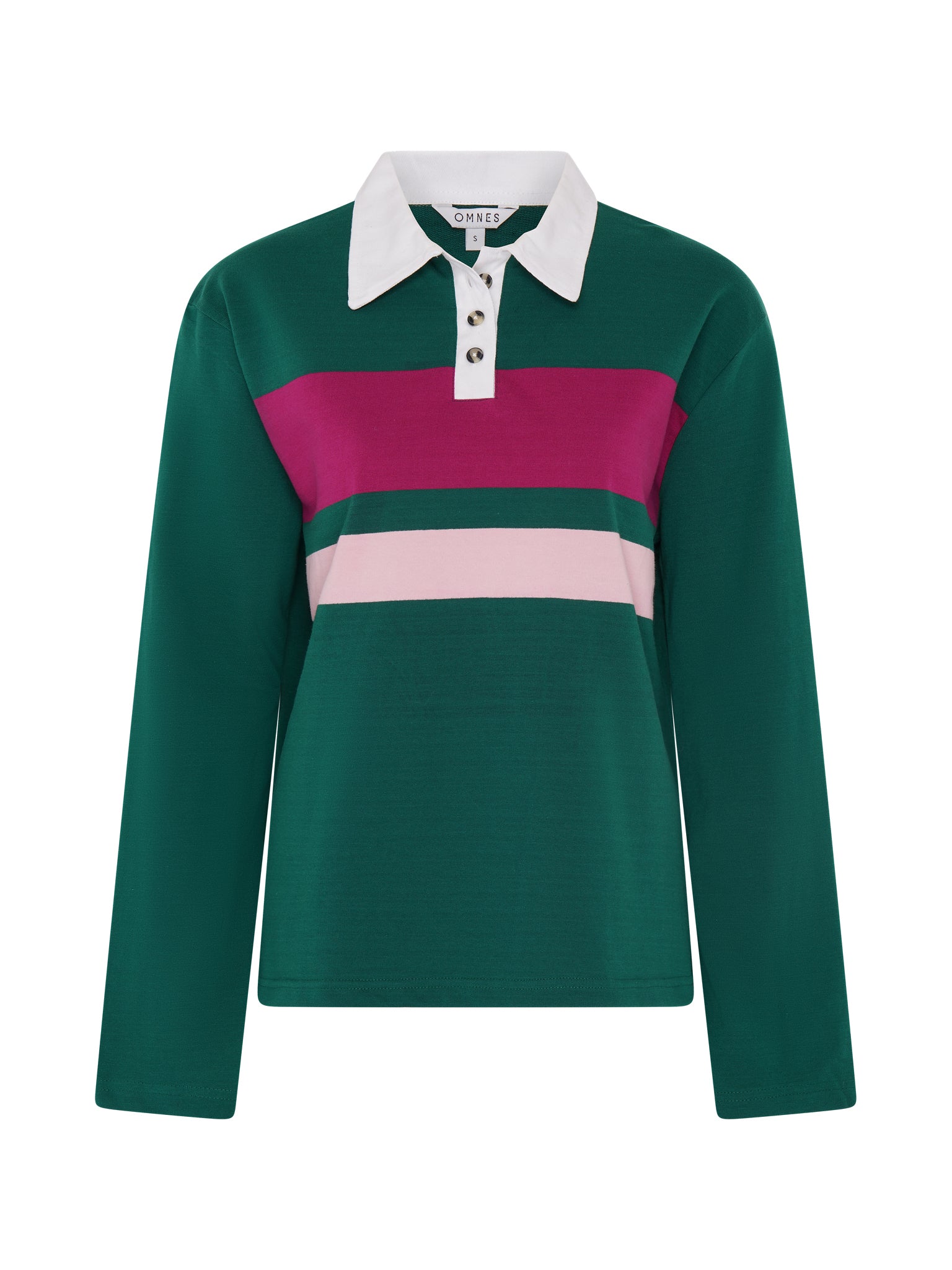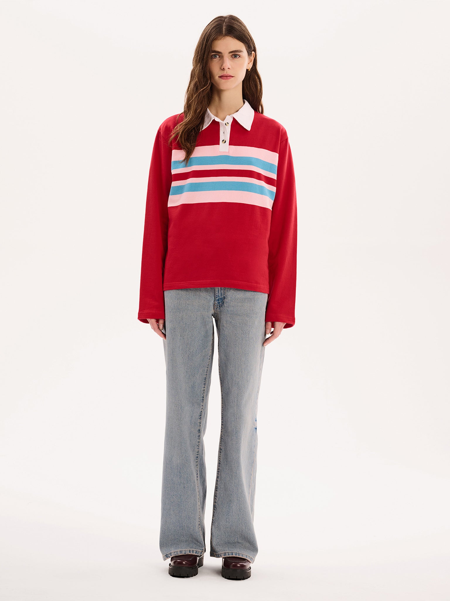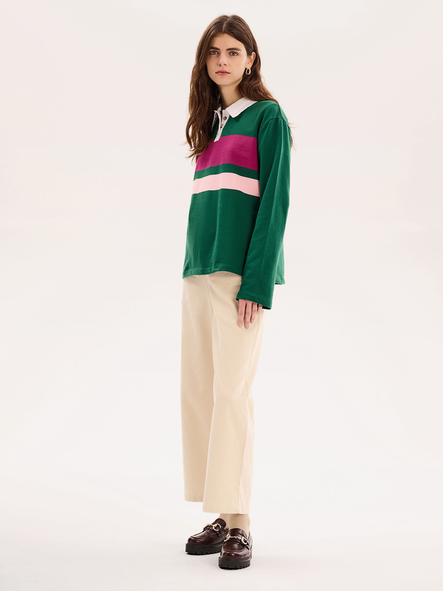 Hugo is our rugby-inspired, long-sleeve polo shirt. A colour-pop stripe design enhanced by a contrasting collar, Hugo is woven from a thick BCI member cotton for an oversized fit.