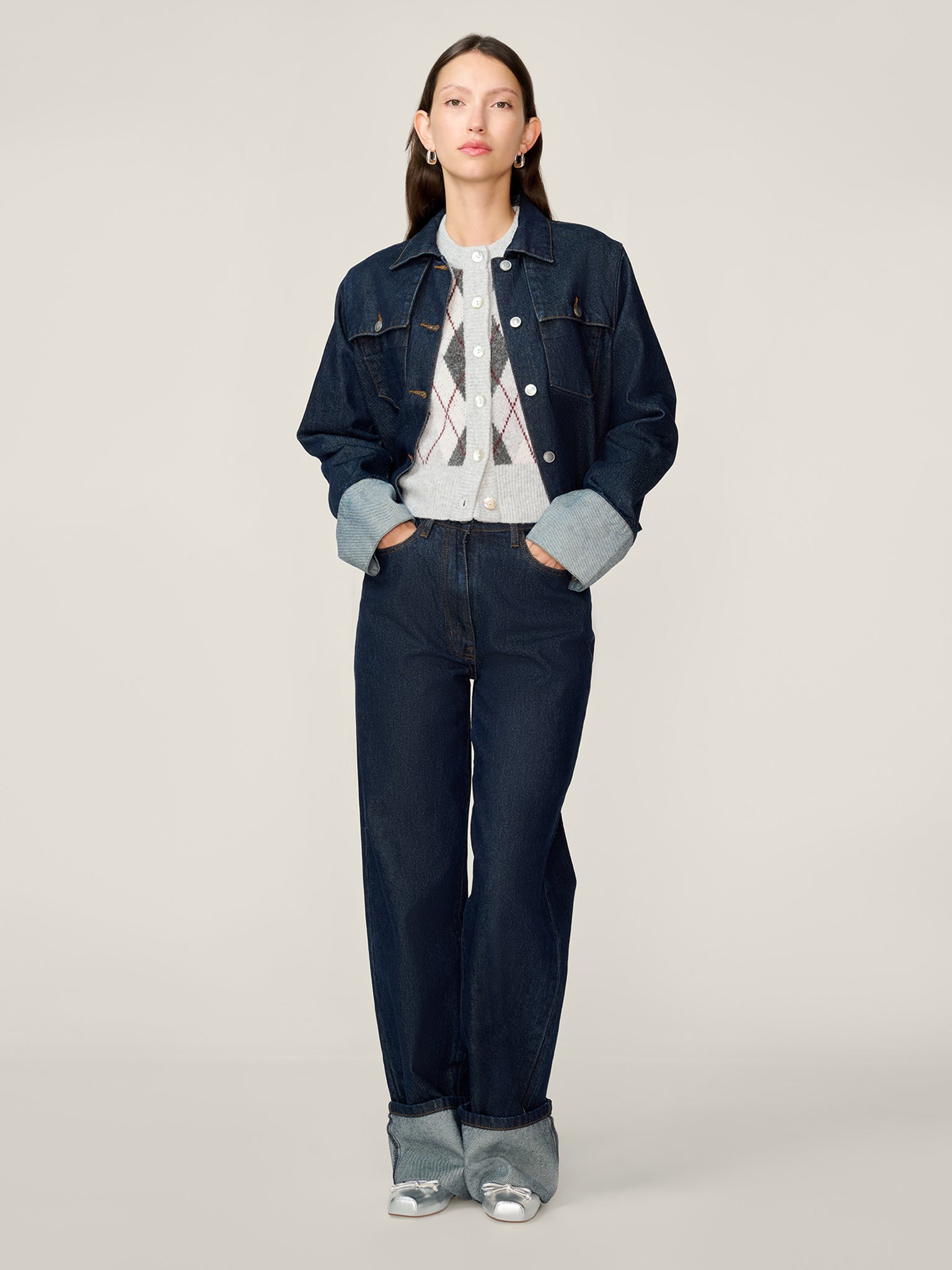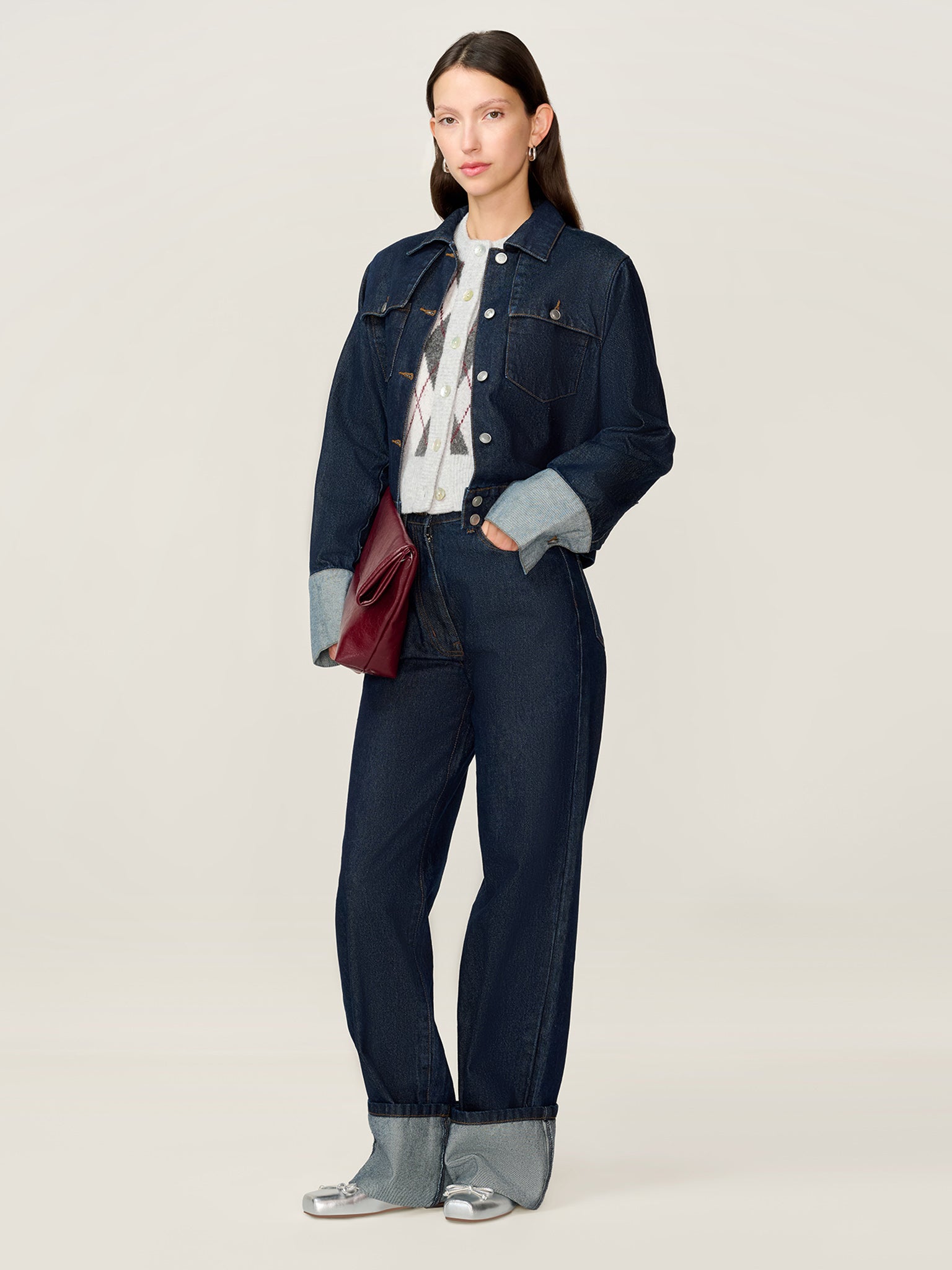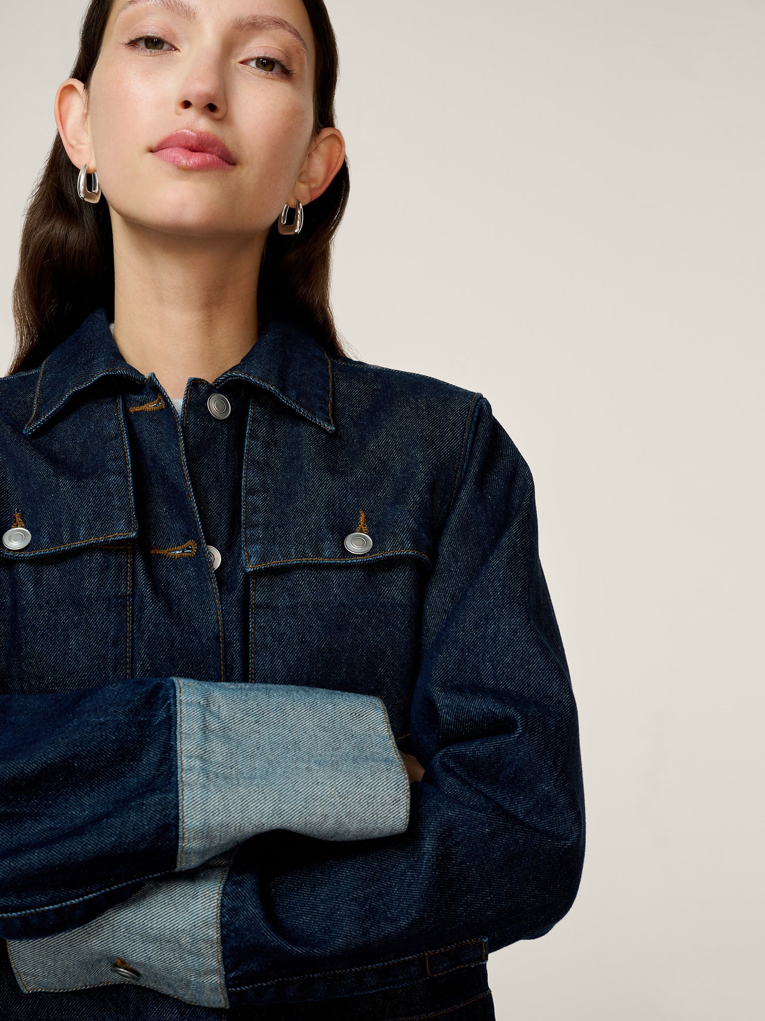 Jesse is your go-to denim layer with a fresh edge. Designed with dark-wash denim in a boxy, cropped fit, it features a defined collar, oversized fold-up cuffs and clean lines throughout. Easy to throw on, easy to style; it’s the kind of jacket that does all the work for you.
