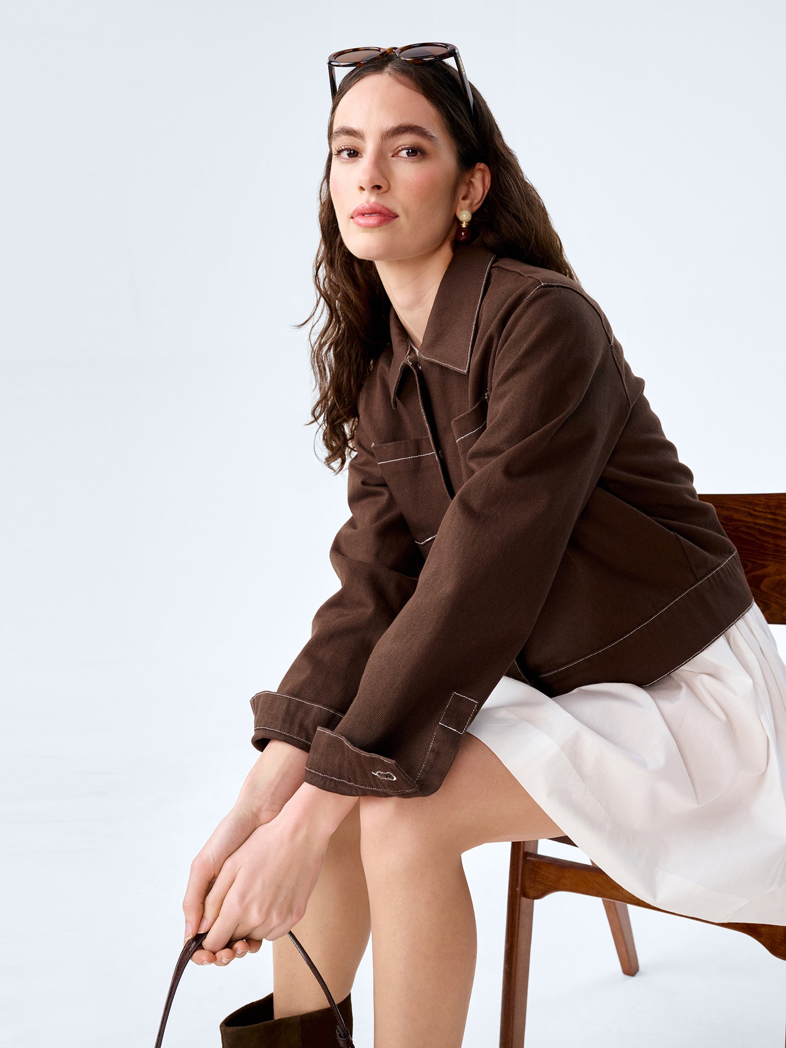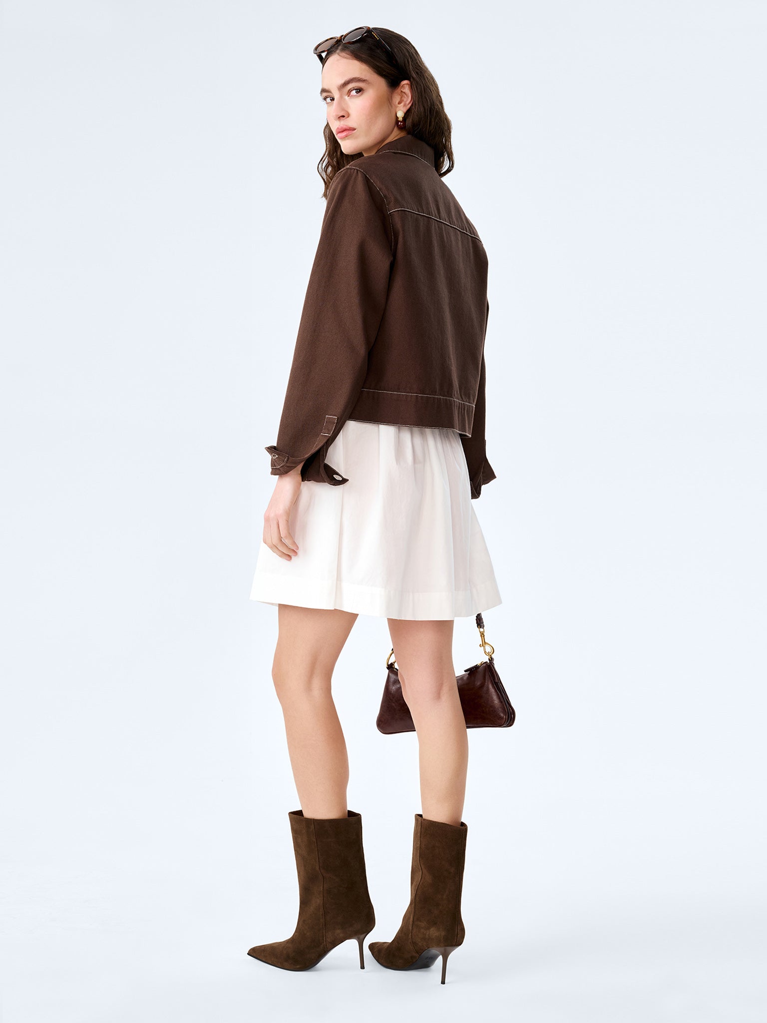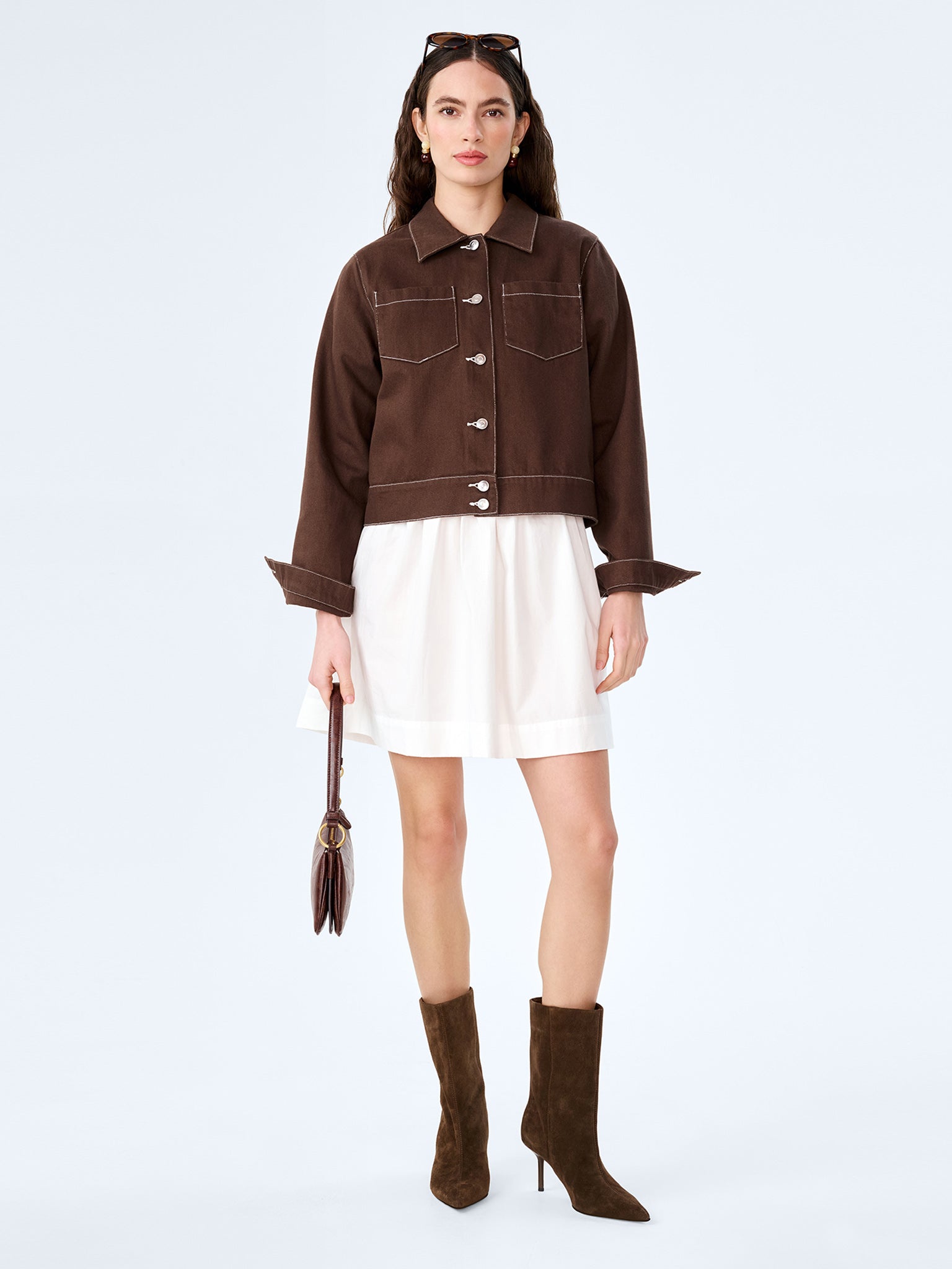 Jesse is your go-to denim layer with a fresh edge. Crafted from chocolate brown denim in a boxy, cropped silhouette, it features a defined collar and clean, structured lines throughout. Easy to throw on and effortless to style, it’s the kind of jacket that does all the work for you.