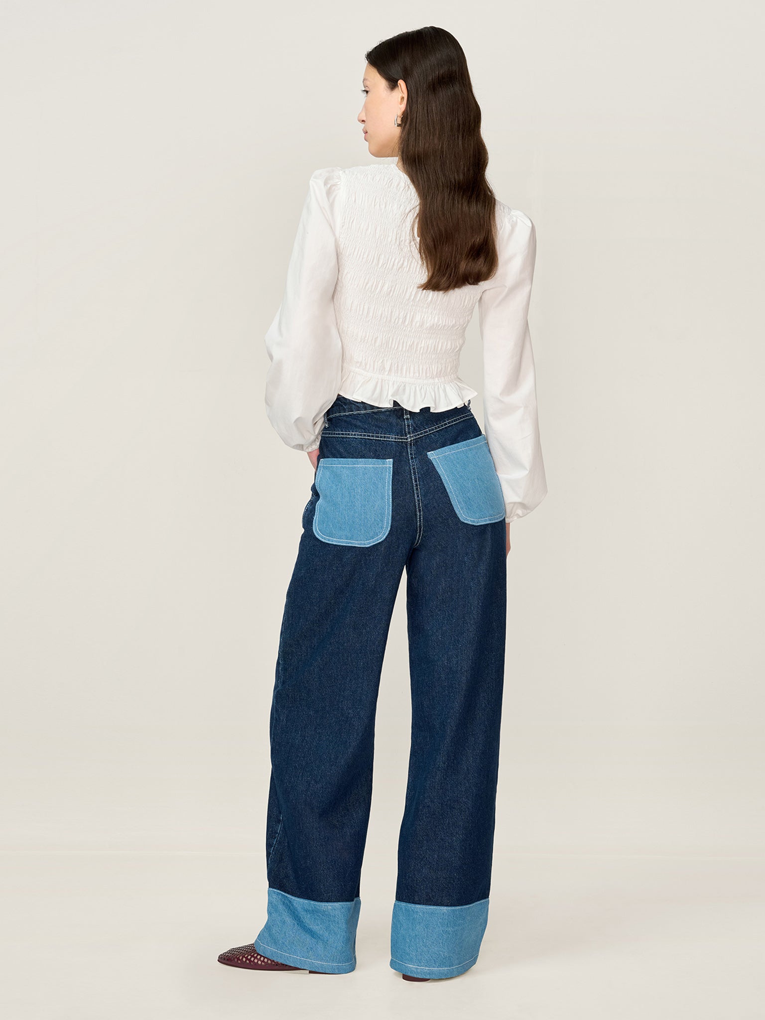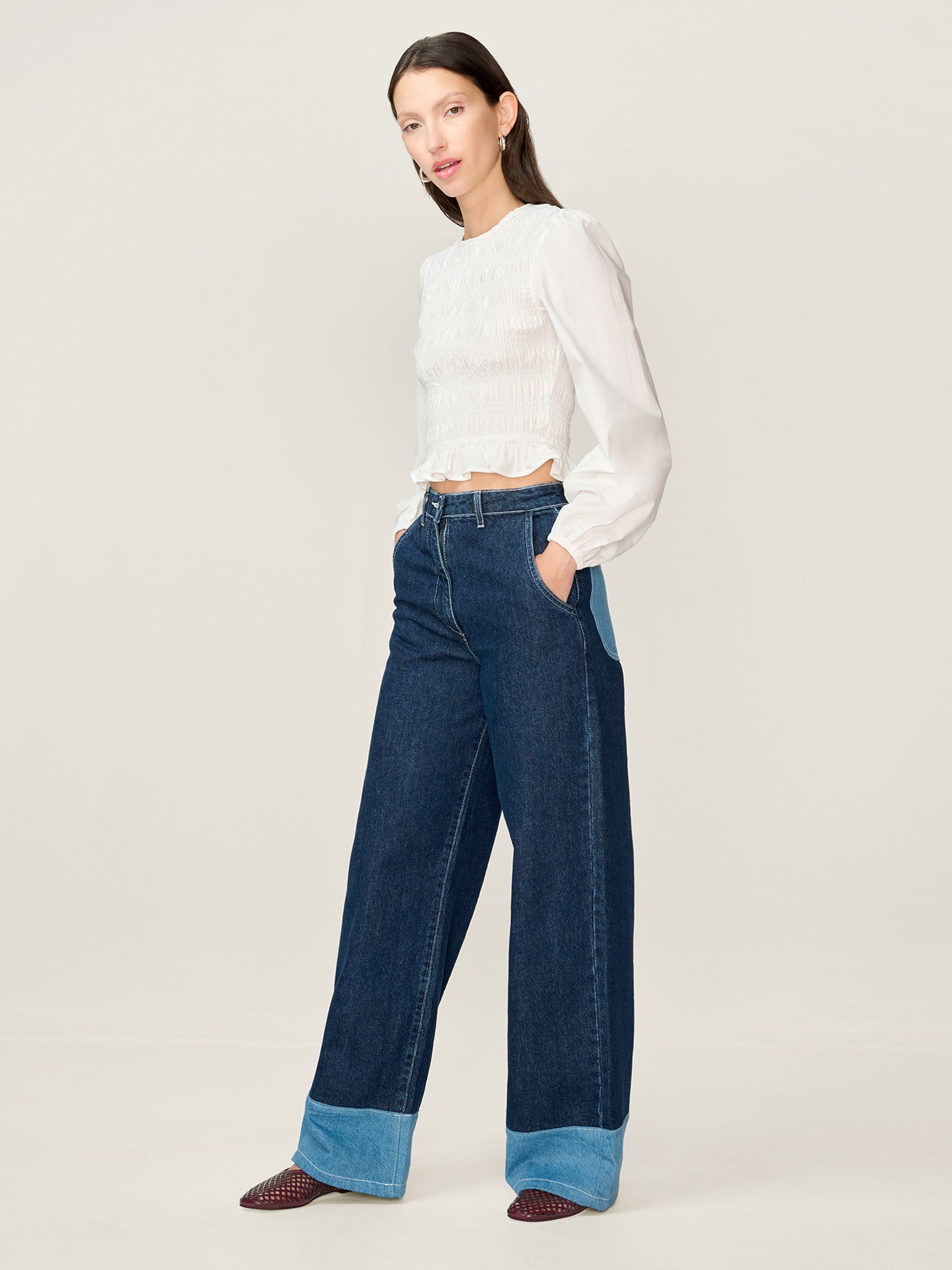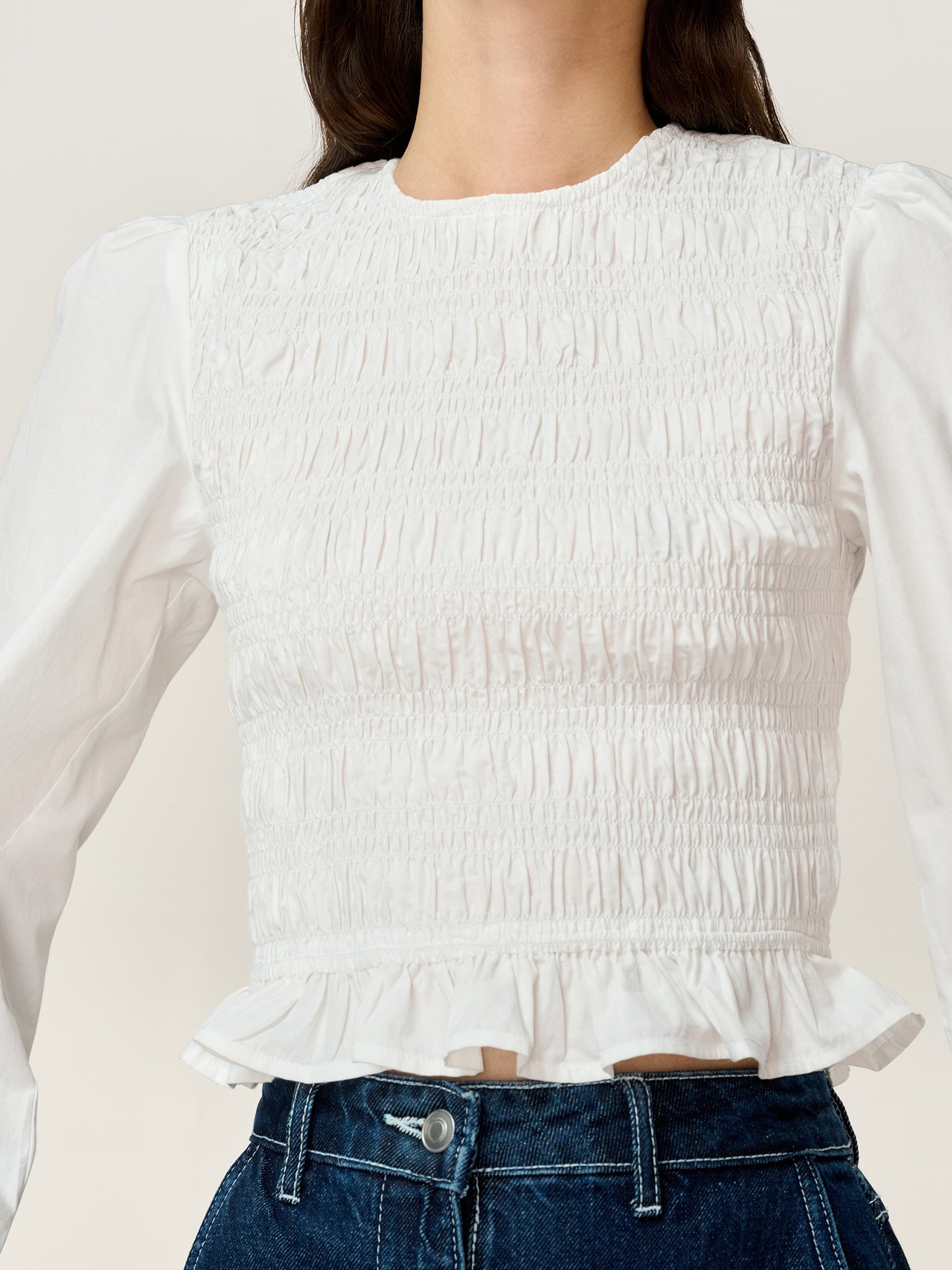Balloon sleeve, shirred blouse