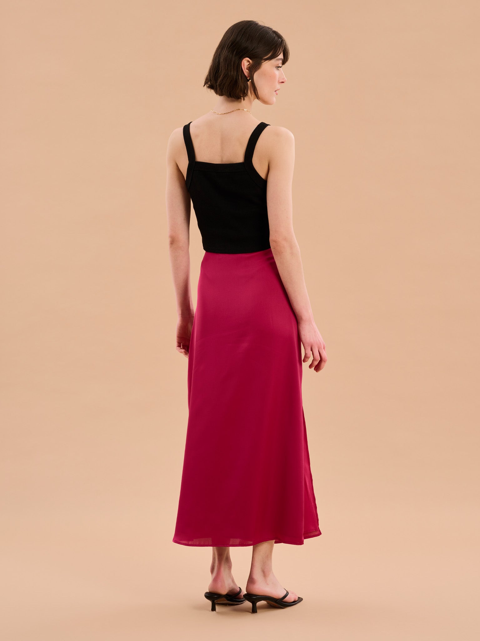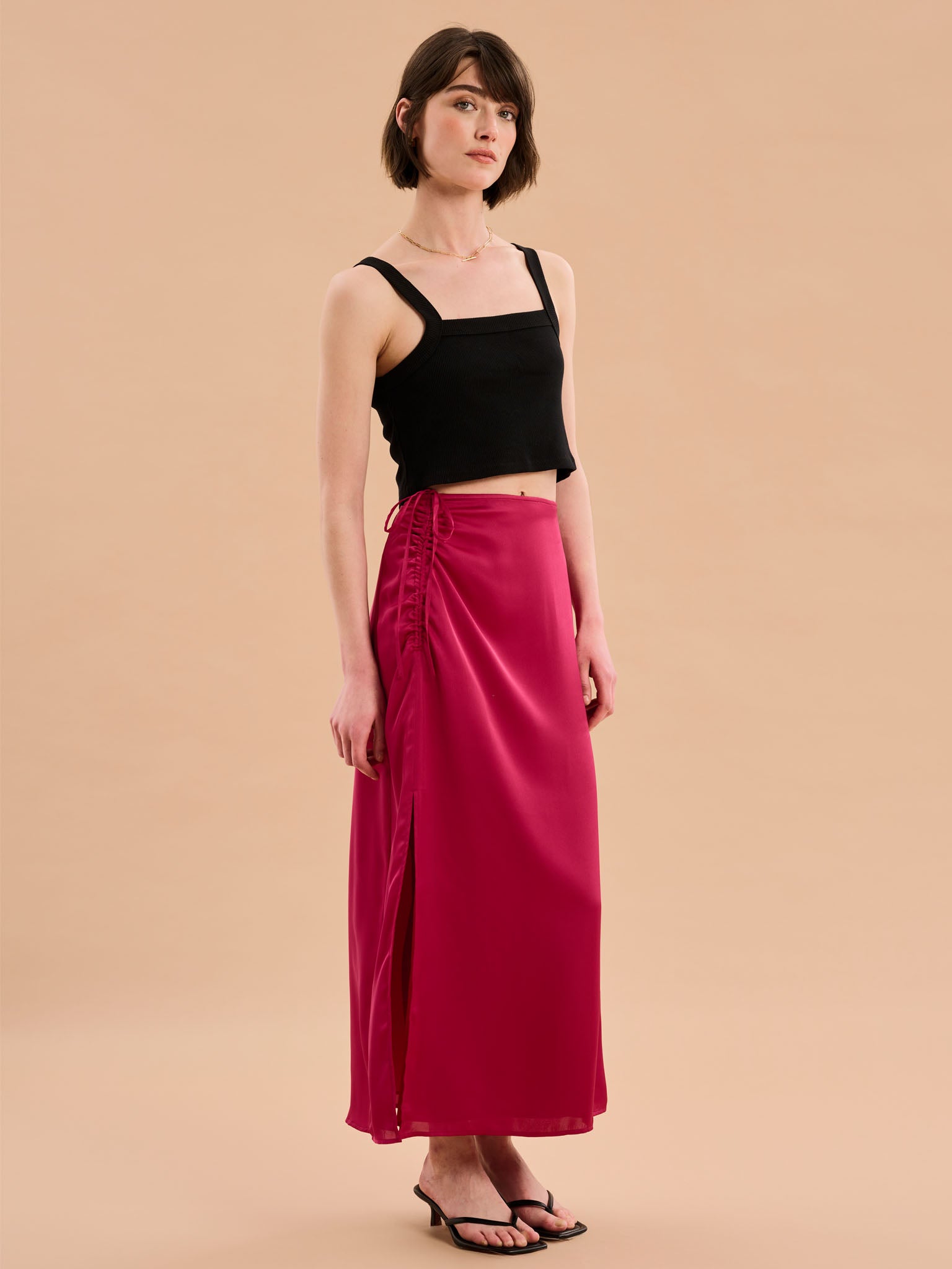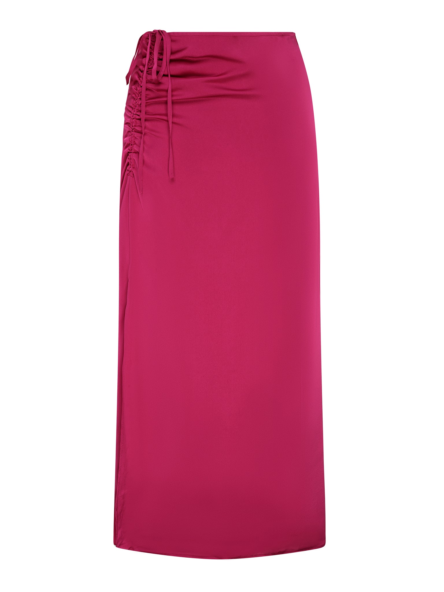 Madelyn is the perfect midi skirt for day-to-night dressing. In our signature slinky recycled polyester satin, she’s got a side slit and rouched detail for added joie de vivre. In our signature magenta hue, Madelyn is ticking all the boxes.