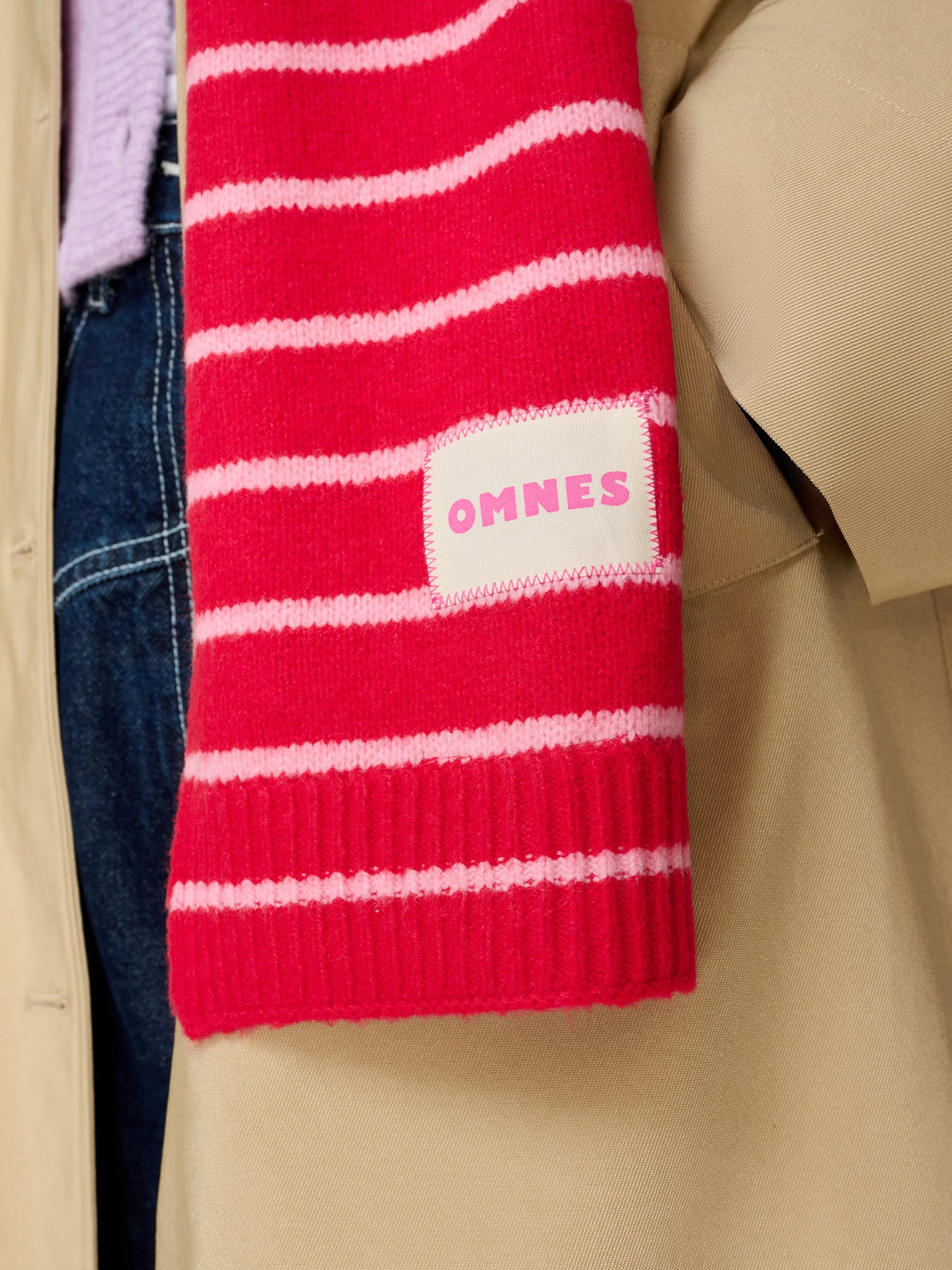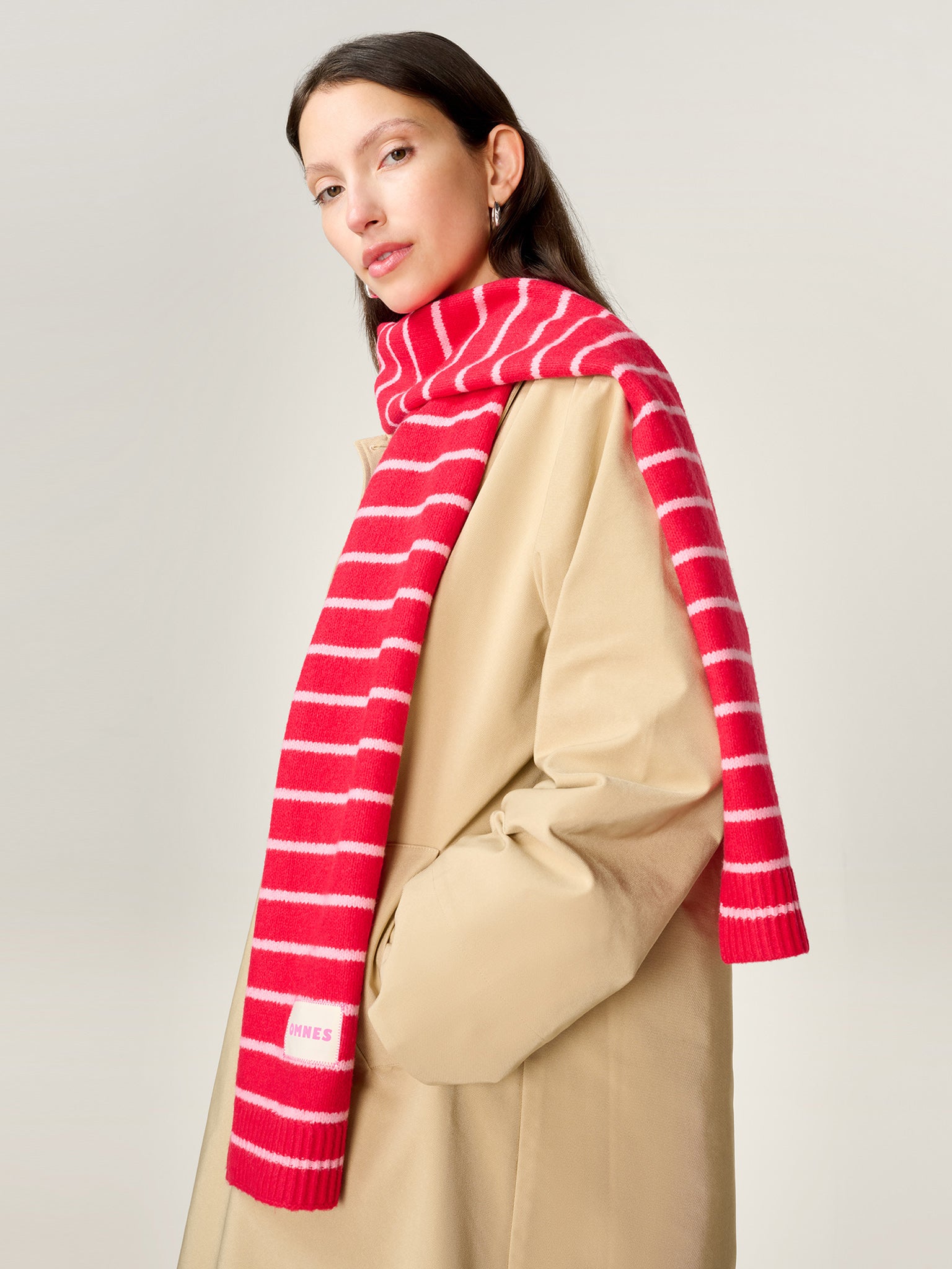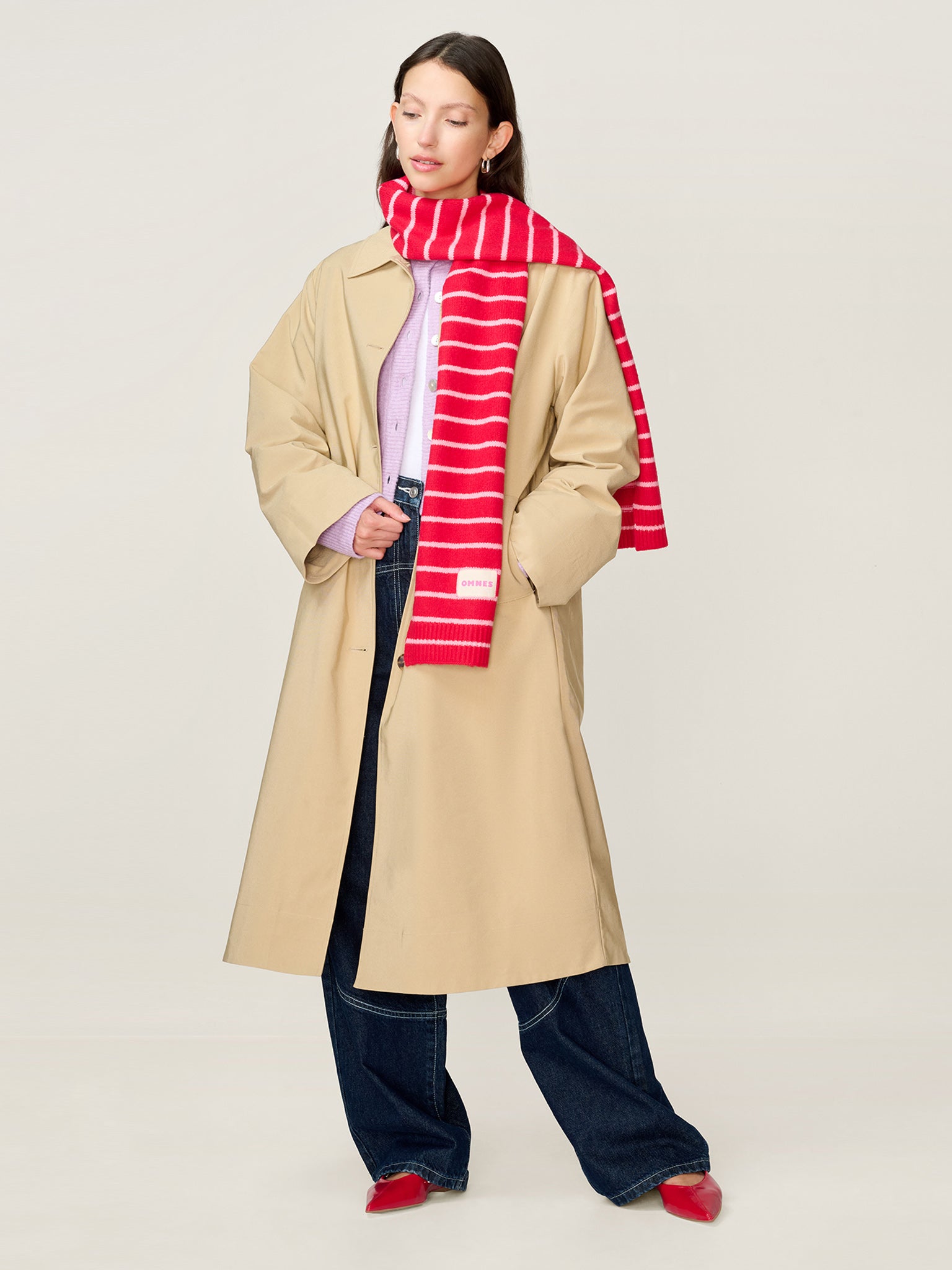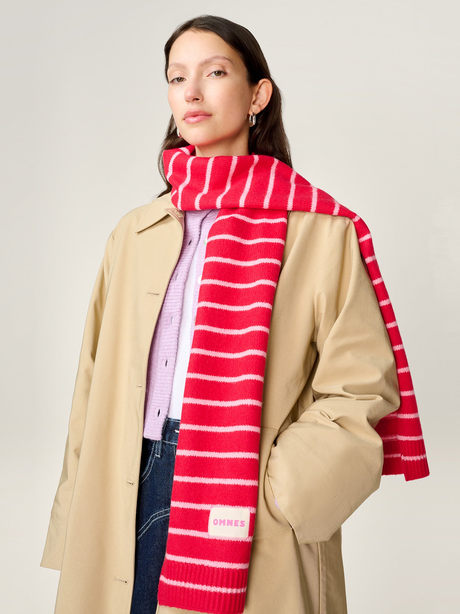 Molly is made to brighten up cold-weather days. Fluffy and oversized with playful pink and red stripes, she adds instant colour and texture to your look. She’s the extra layer you’ll reach for again and again.