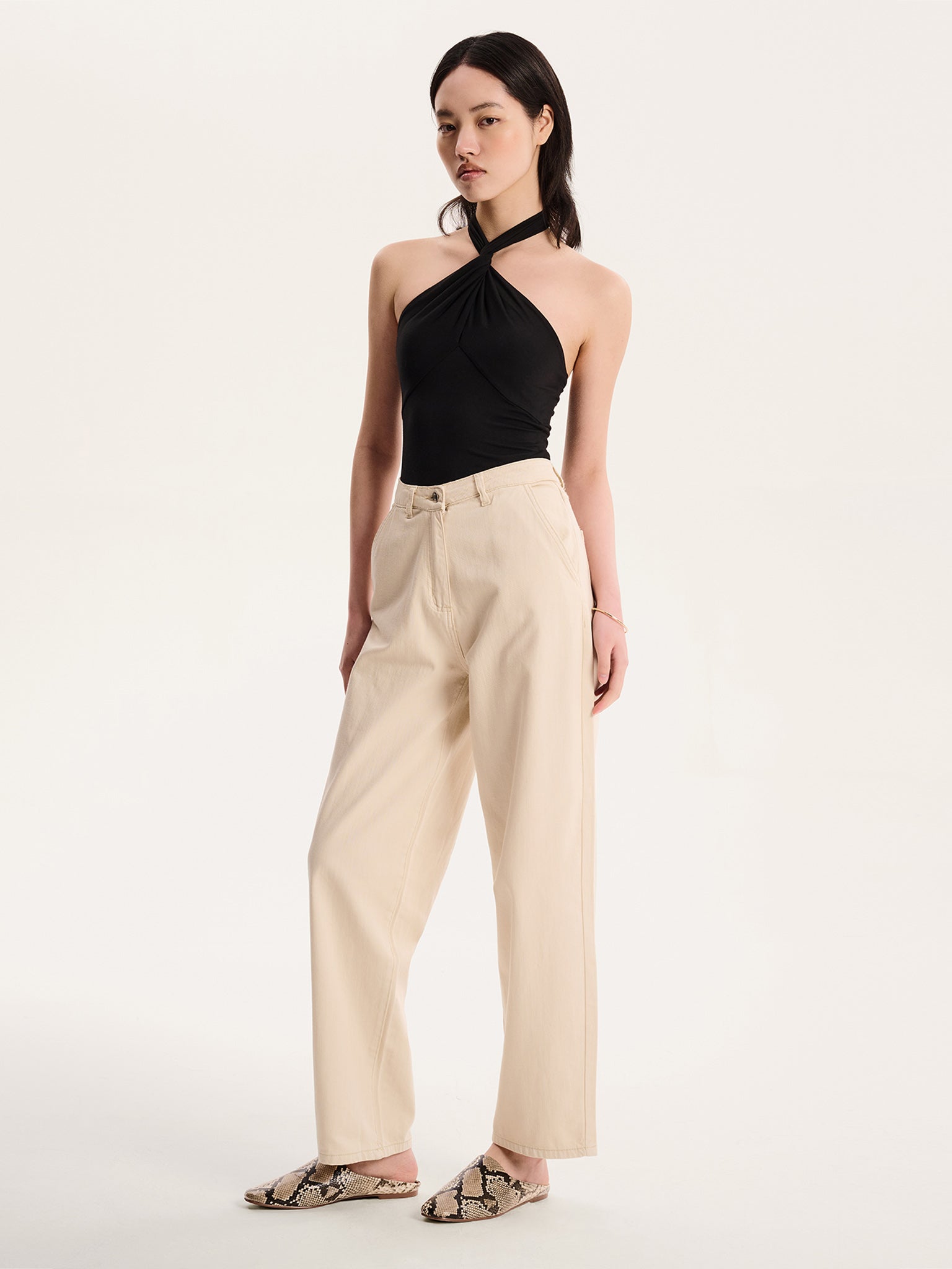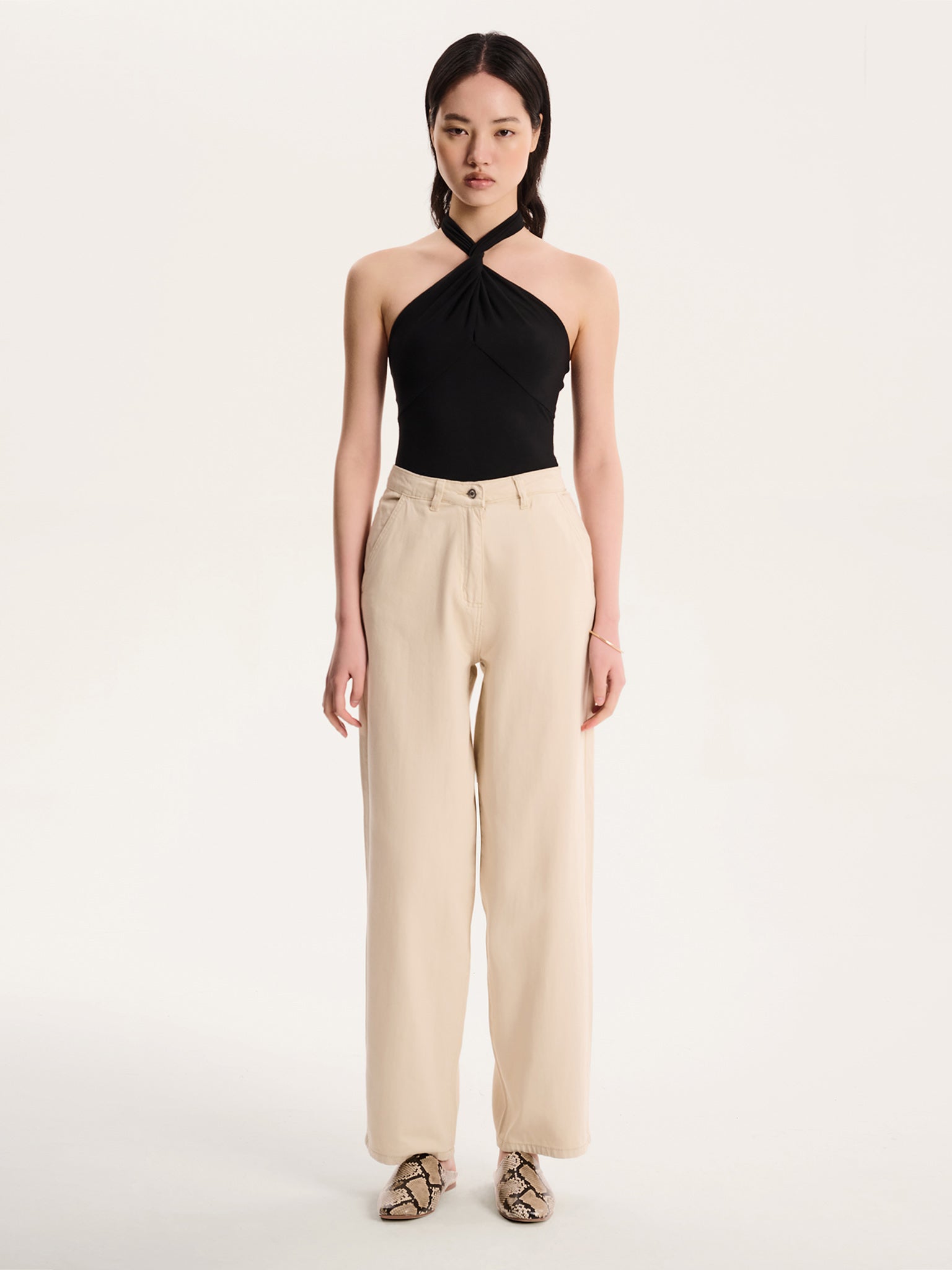 Our Nelson top features a chic twist halterneck design, offering a fresh take on a classic silhouette. Made from luxurious viscose derived from bamboo, this top is not only incredibly soft and breathable but also planet-conscious.