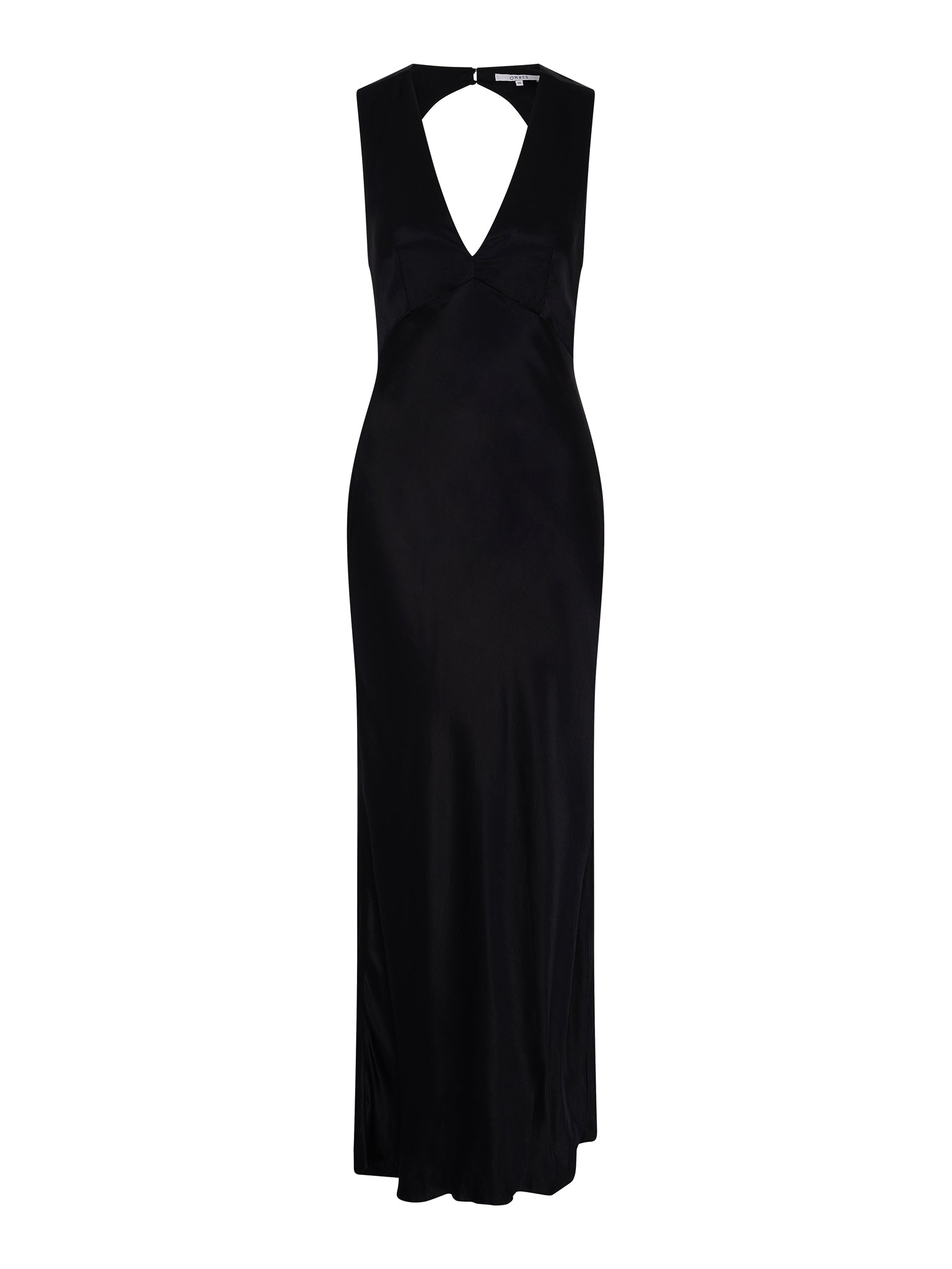 The model is 5' 8'' and wears size 8 Sleeveless tie back dress that hugs at the waist Maxi length dress that skims the hips and floats out at the hem Regular