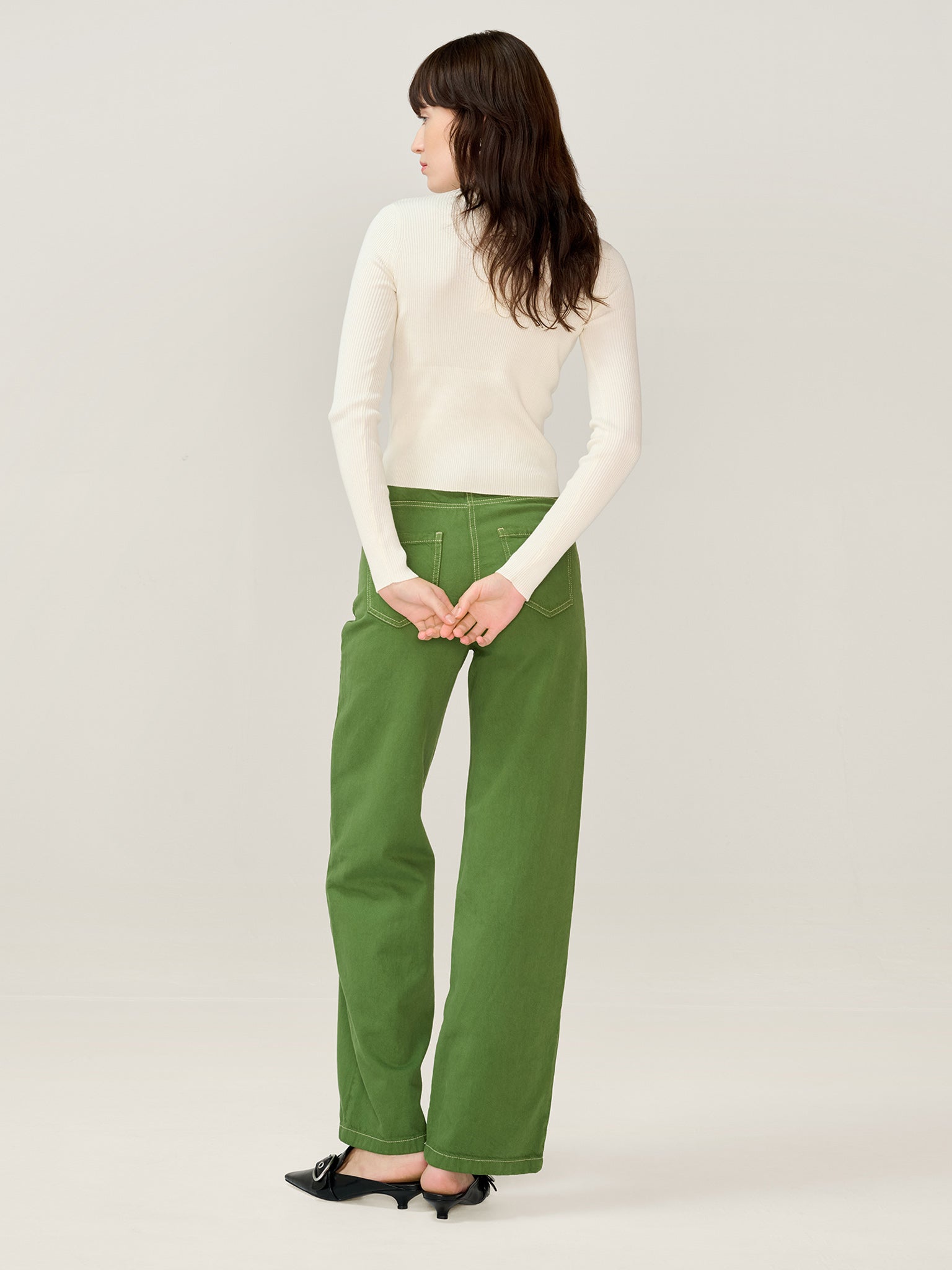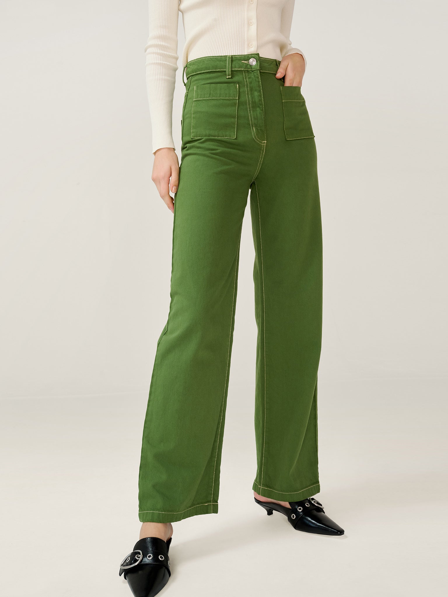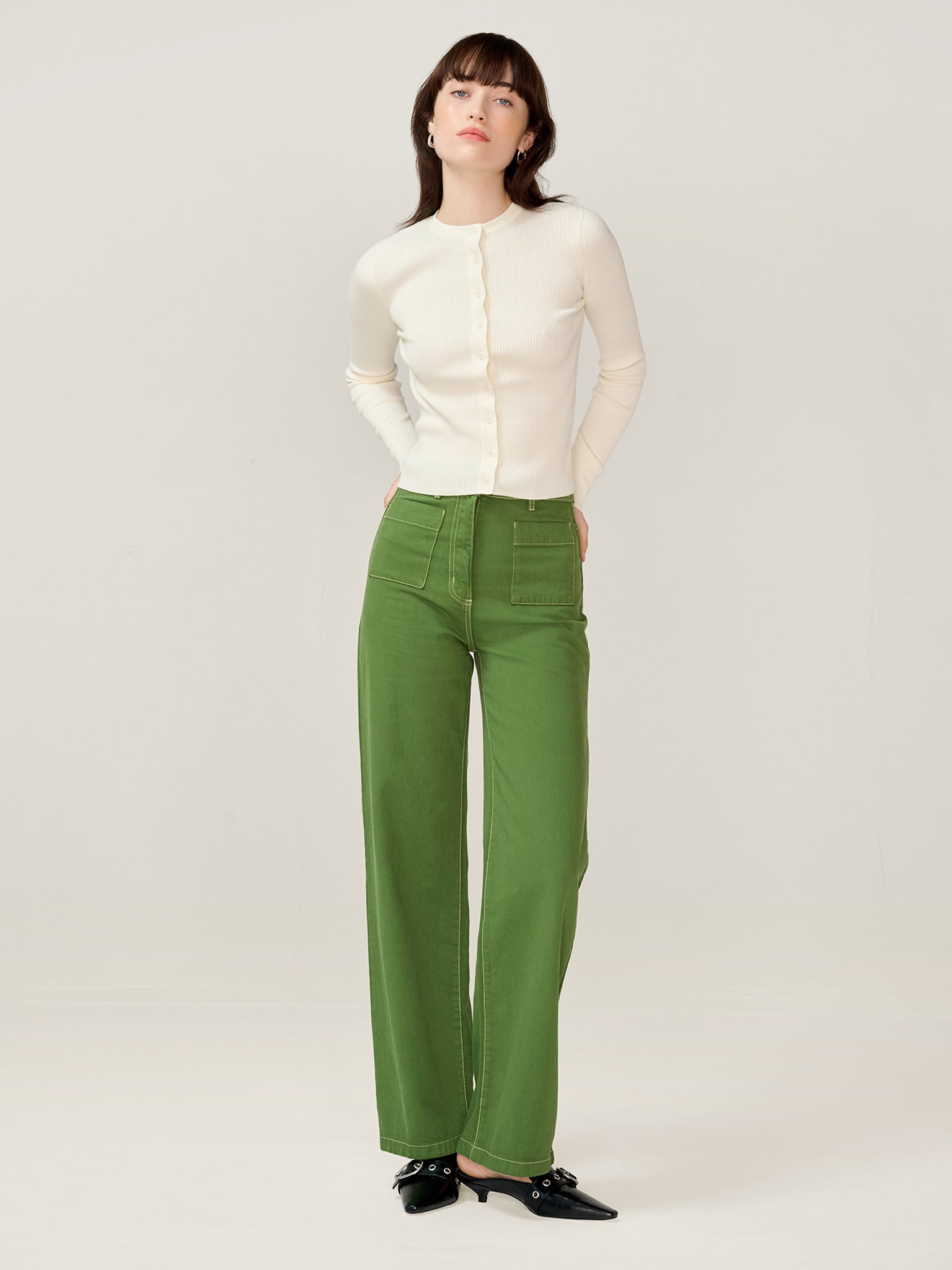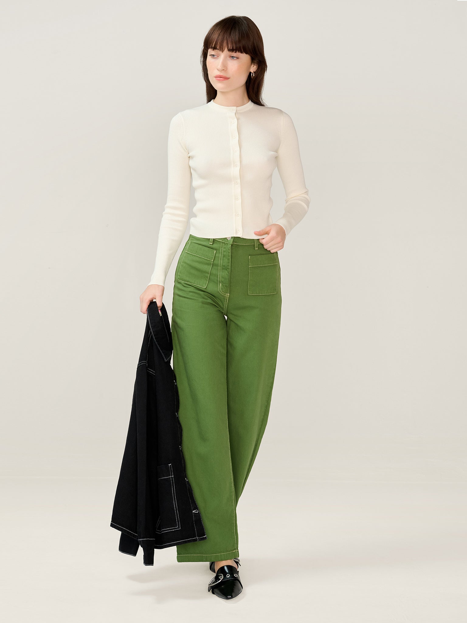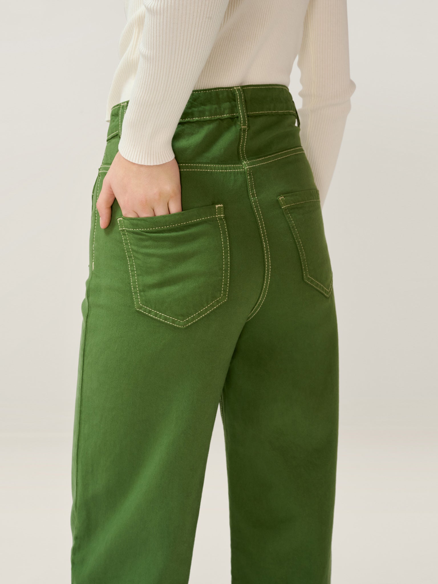 In a classic khaki denim with contrast stitching, Orielle is a high-rise jean with patch pockets. Designed with a slightly flared leg for a flattering fit, all of our denim is crafted from 100% BCI member cotton. Wear on repeat all year long as part of your conscious capsule wardrobe.