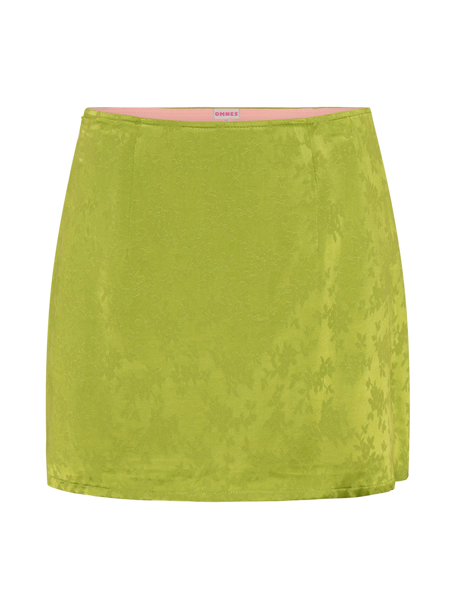 Playful yet polished, the Patty skirt is cut in a classic A-line silhouette and reimagined in vibrant lima bean green. Crafted from rich floral jacquard, it offers subtle texture and a soft sheen that elevates this statement mini skirt. Perfect with a simple tee or styled as a co-ord with the matching top, Patty is your go-to piece for day-to-night dressing.