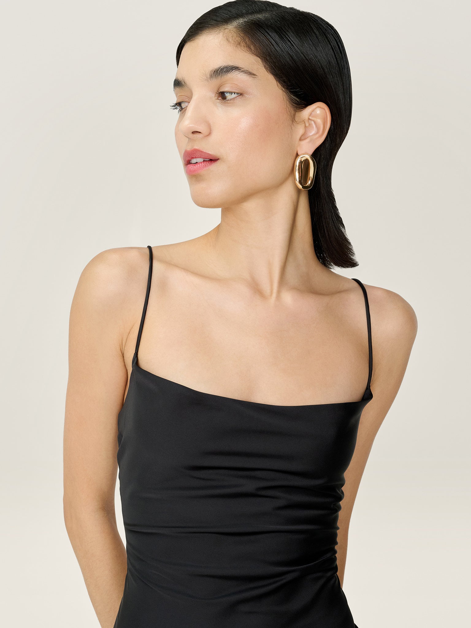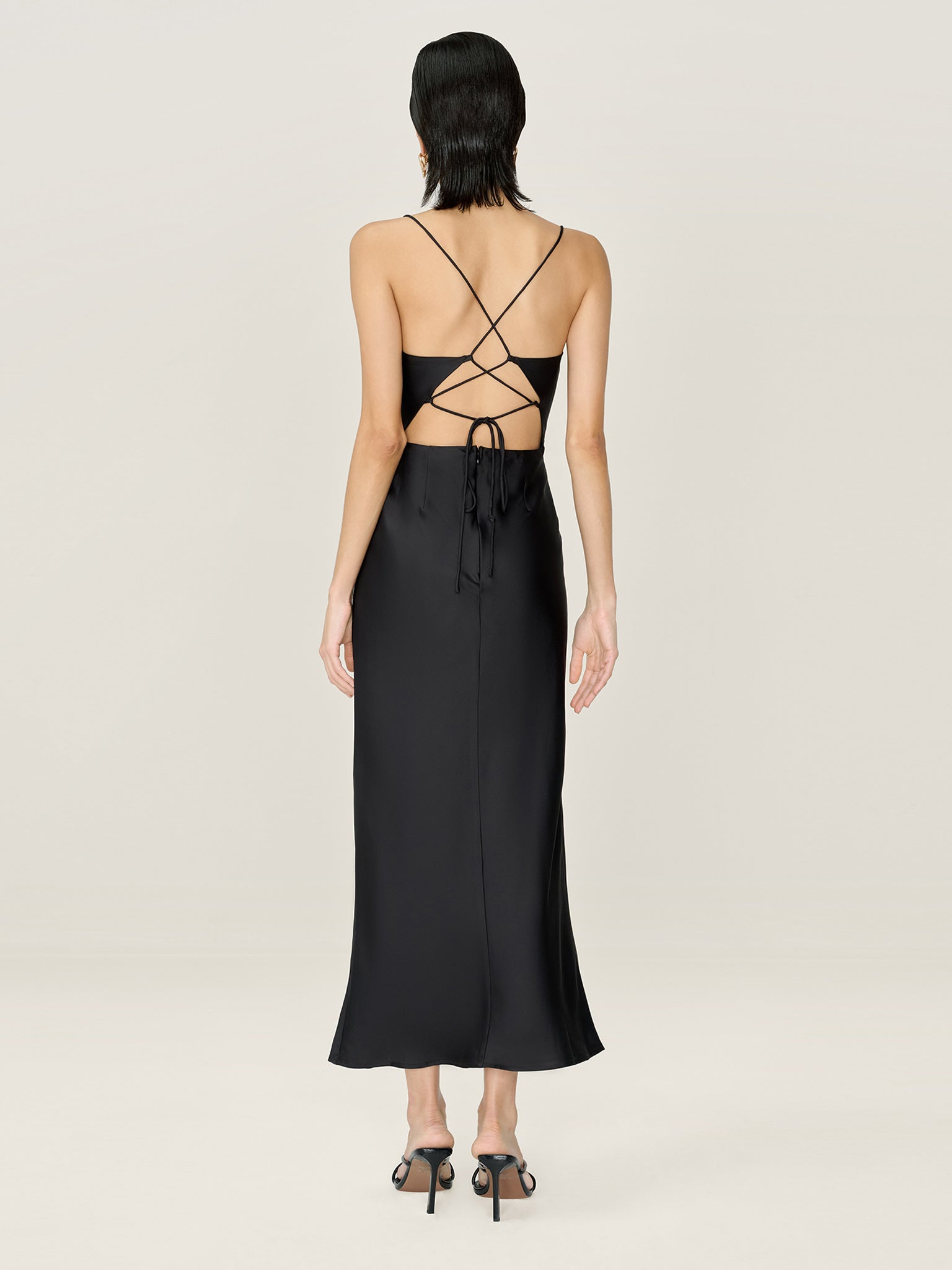 Inspired by 90s slip dresses, the Riviera is designed with a flattering body-skimming cut, cowl neck and show-stopping tie back detail. Crafted from slinky satin, we've designed the Riviera with longevity in mind; she's about to become the new go-to occasion piece in your wardrobe.