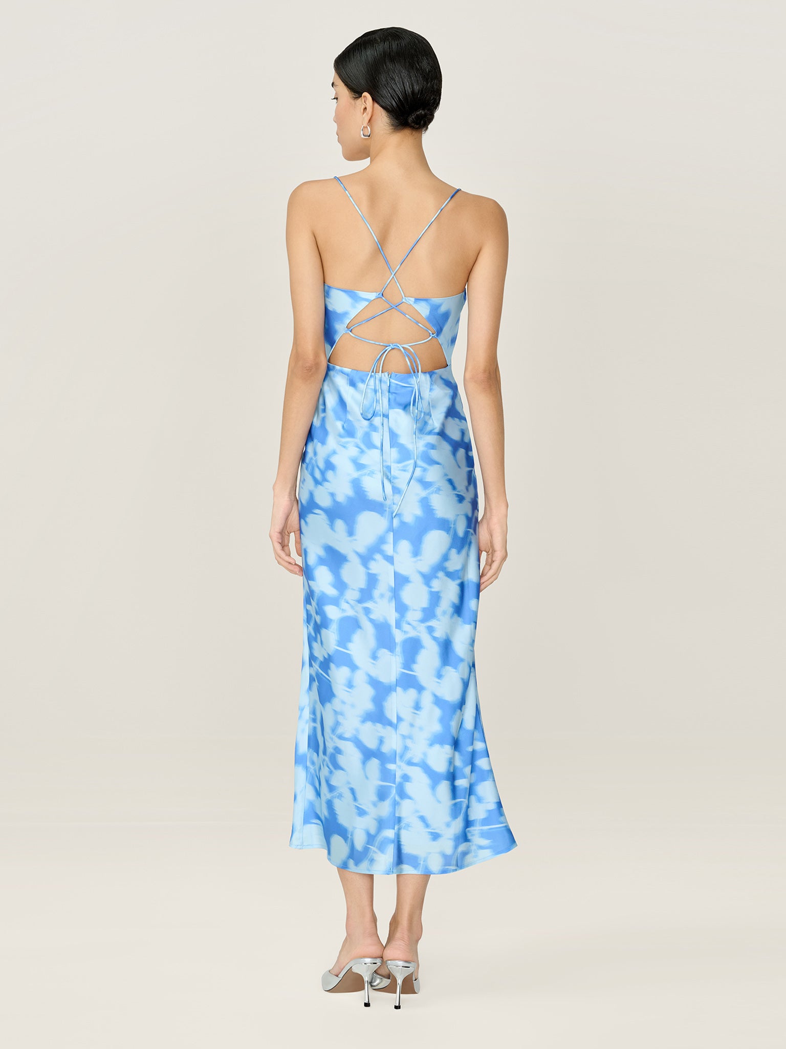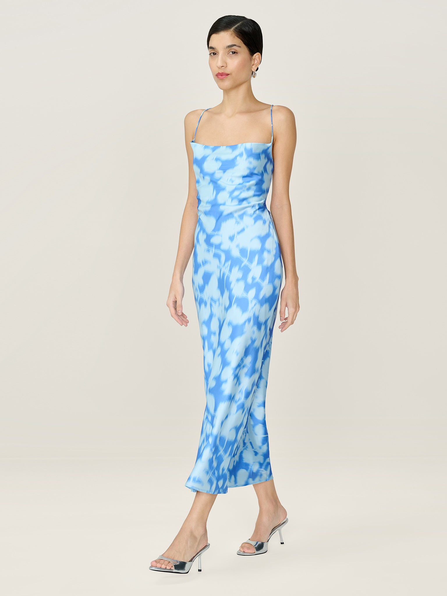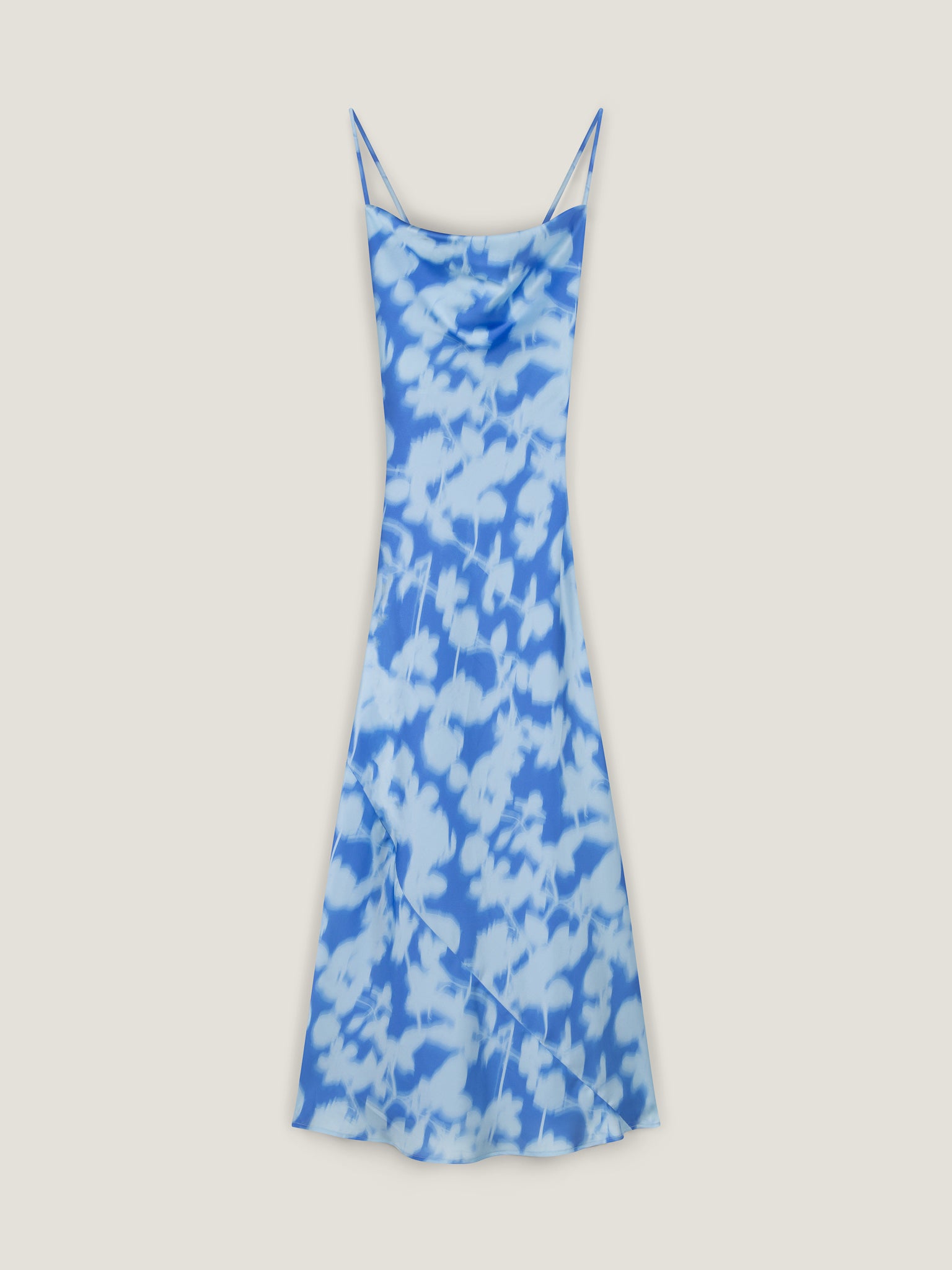 Inspired by 90s slip dresses, the Riviera is designed with a flattering body-skimming cut, cowl neck and show-stopping tie back detail. Crafted from slinky satin in a powder blue blurred floral print, we've designed the Riviera with longevity in mind; she's about to become the new go-to occasion piece in your wardrobe.