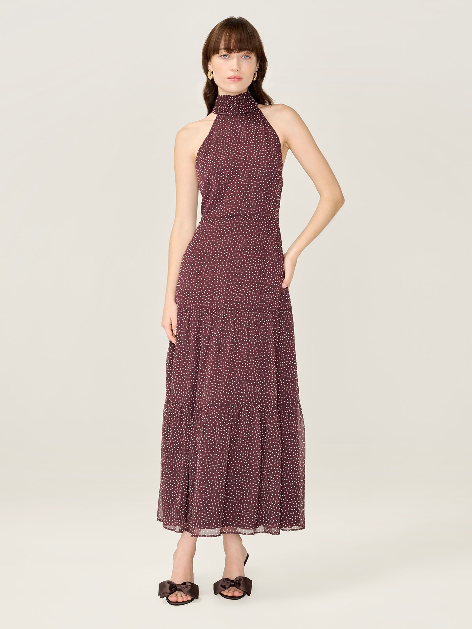 Romeo is all things light and flowy, designed in a raspberry rose chiffon made from recycled polyester with a ditsy floral print. The high neck comes with a sash detail for the ultimate feminine flourish with a tiered skirt to add movement. Romeo is a true chameleon, equally dreamy at an event or dressed down for everyday wear.