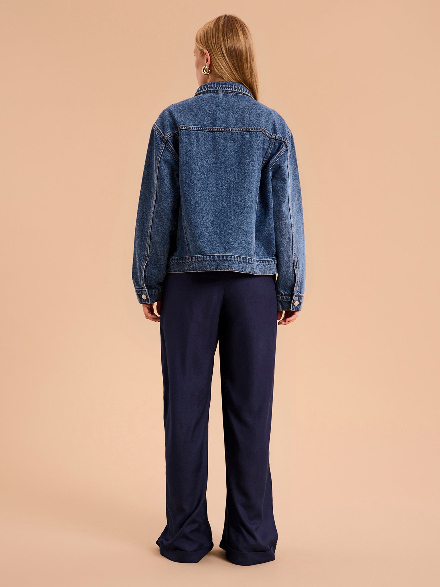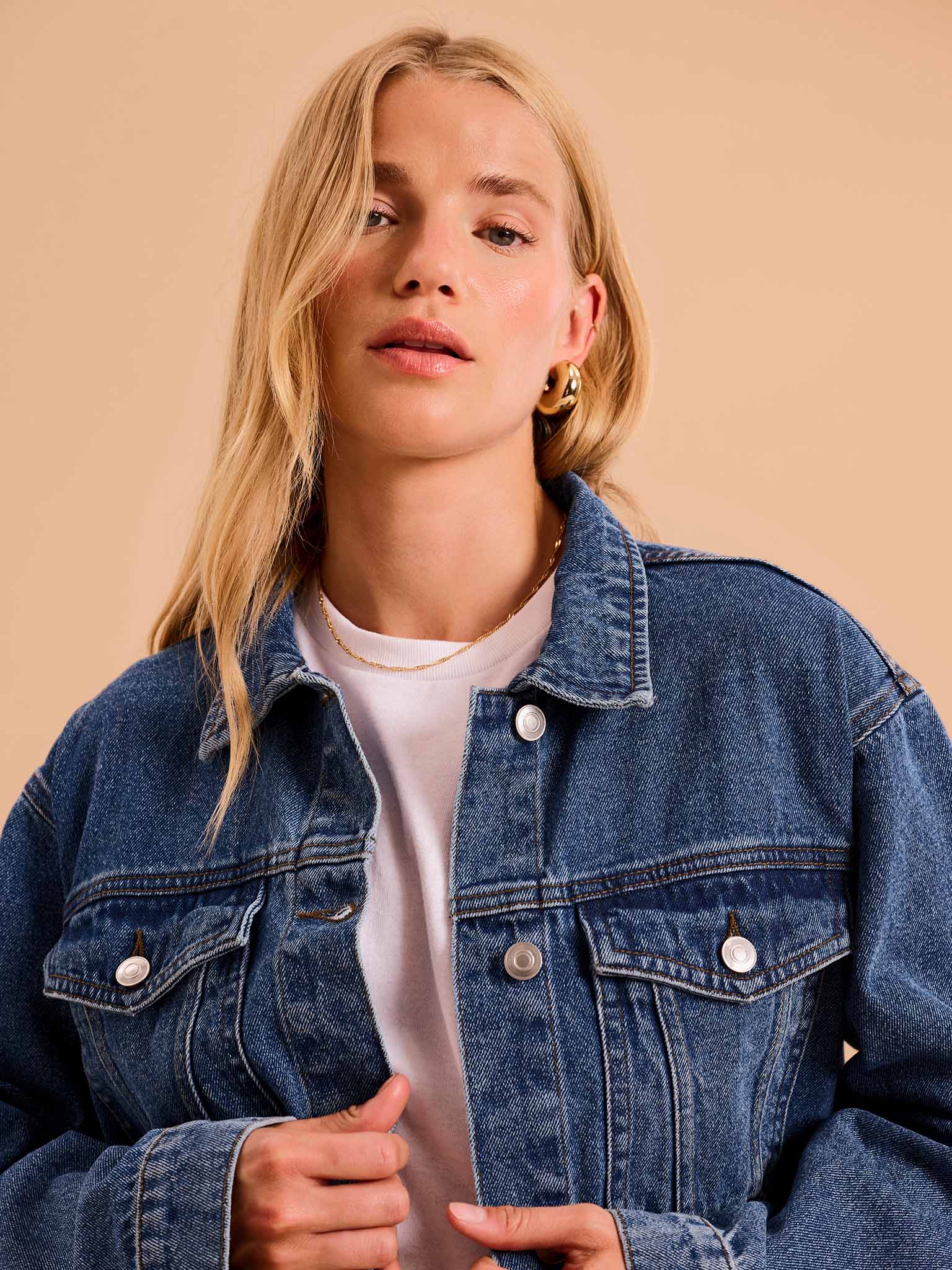 Theo is your classic denim jacket in a dreamy mid-wash with patch pockets and a button front. Wear all year long for a casual cool aesthetic or pair with the Orielle jeans for a double denim look.