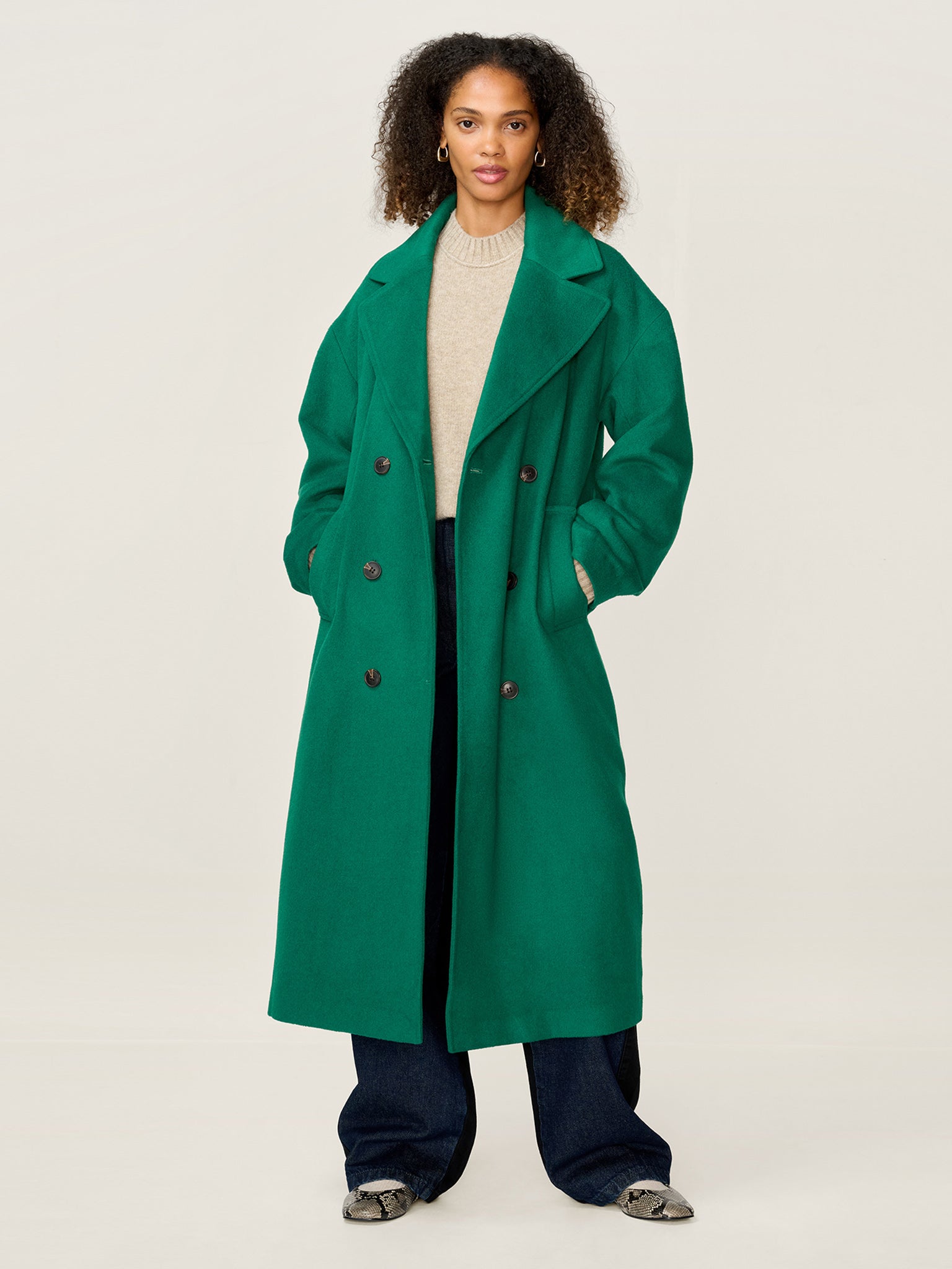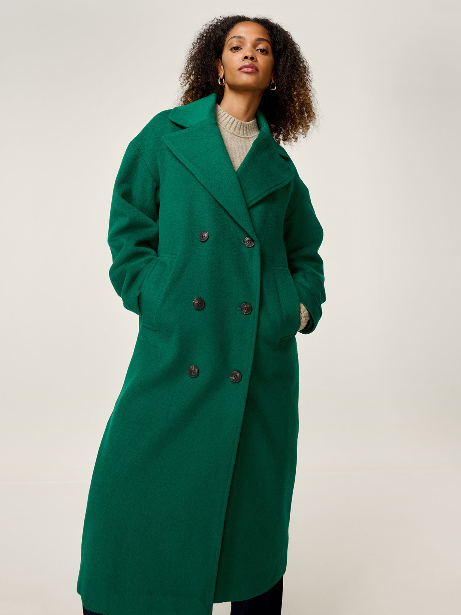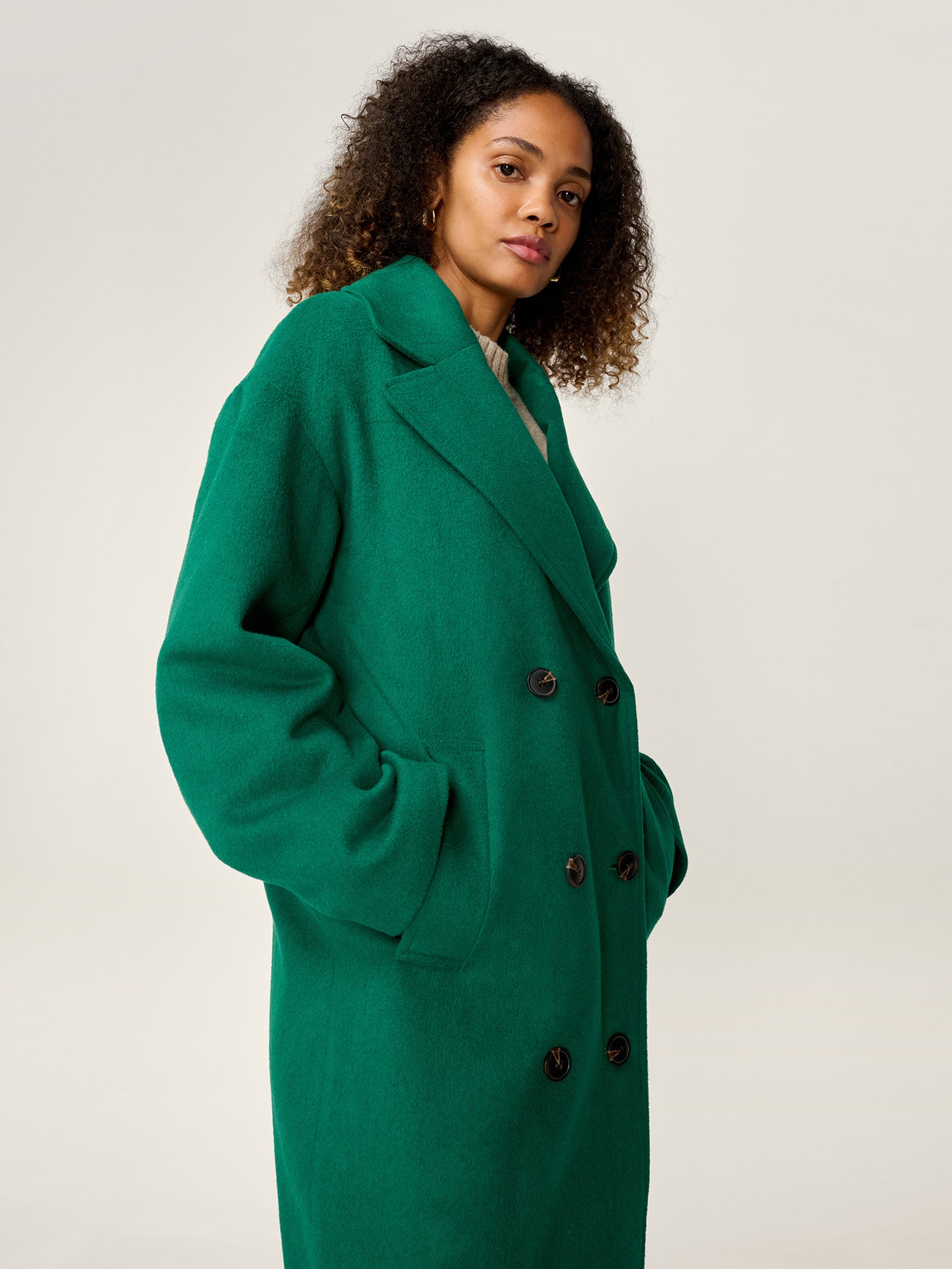 Tina is your go-to for layering outerwear with ease. Crafted from a warm wool blend, this long, oversized coat features classic lapels and a relaxed silhouette for a look that’s effortlessly put-together. Whether thrown over casual denim or dressed up with tailored styles, Tina adds instant polish and warmth to your winter wardrobe.