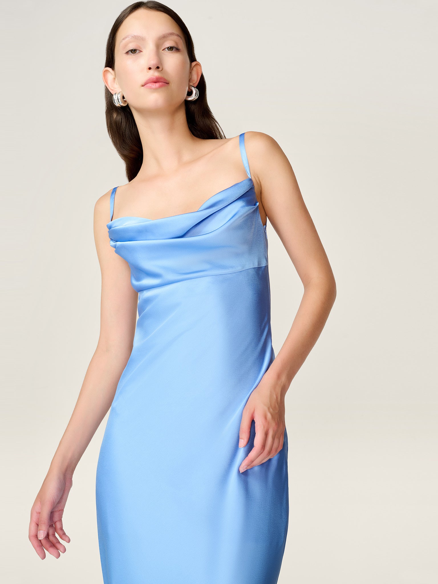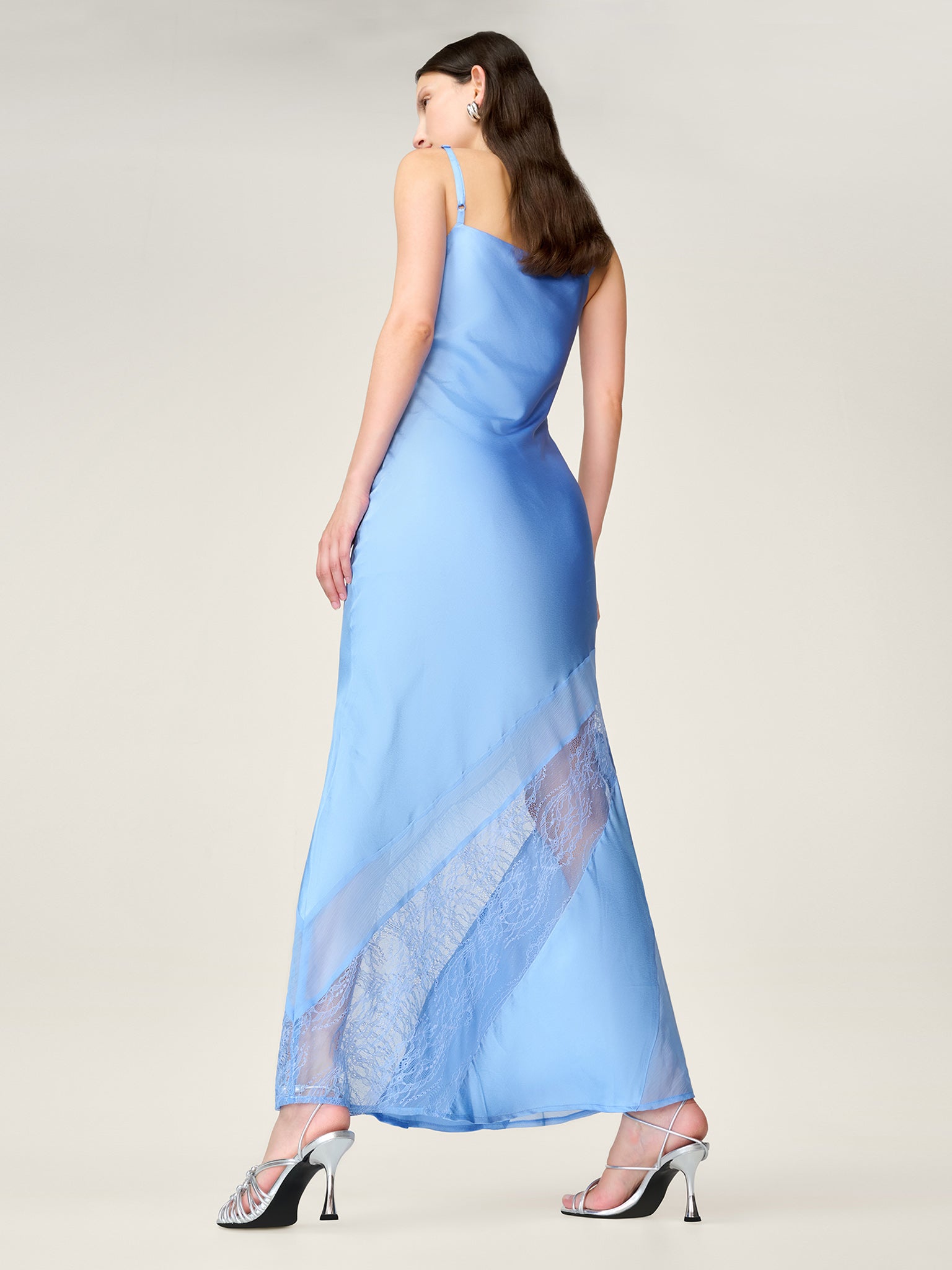 In soft vista blue, Wendy plays with contrast in all the right ways. Cut to a flattering midi length, it’s crafted from panels of satin, chiffon, and lace - each bringing its own texture and movement. For a dress that feels as effortless as it looks polished, look no further than Wendy.